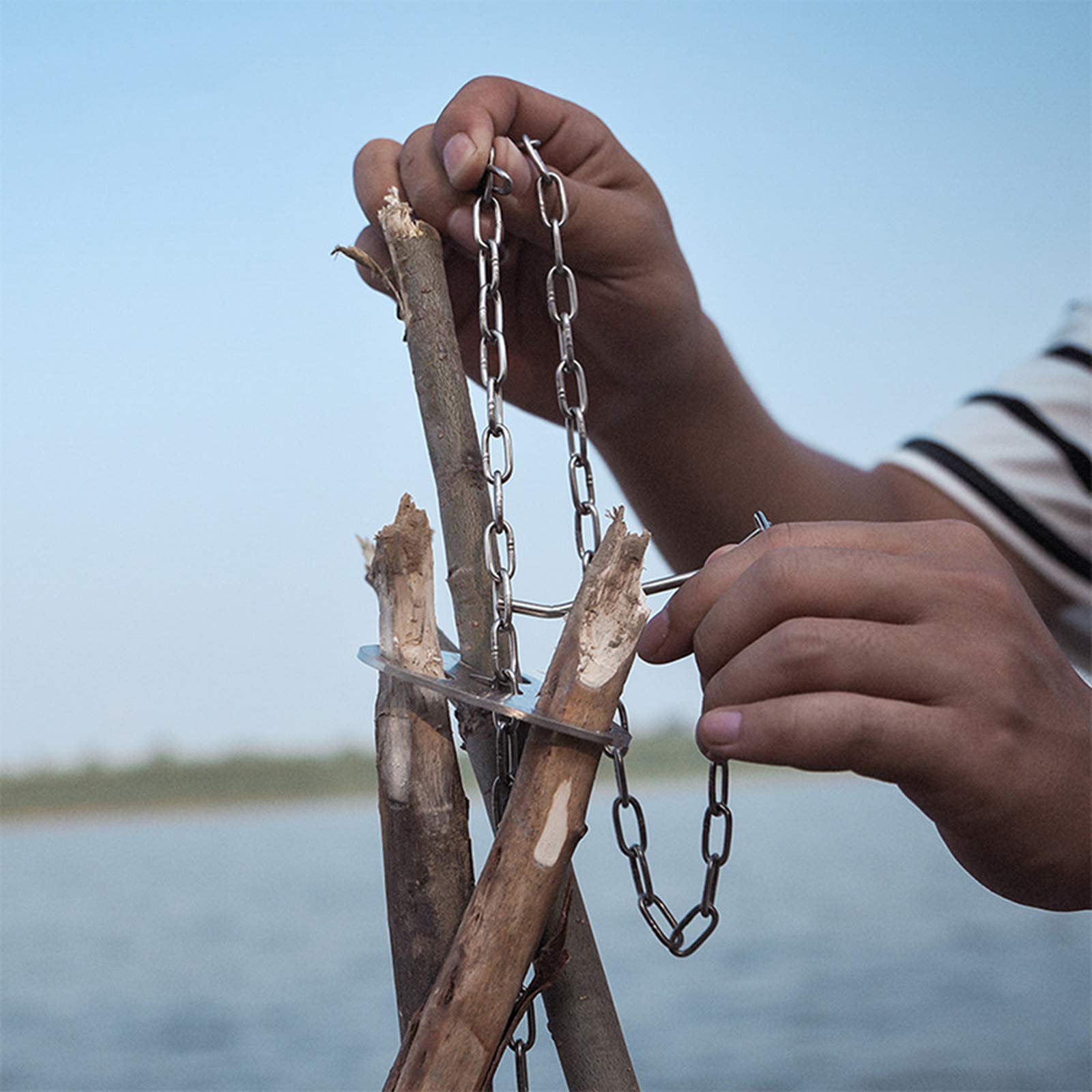 • The height of the hanging chain can be adjusted to the flame according to actual needs. It can be used with outdoor cooking appliances such as Dutch ovens, coffee pots, teapots, and kettles. Stove bracket can be quickly assembled and disassembled, compact storage, small size after storage, light weight, easy to carry, it is an essential tool for outdoor adventure, camping