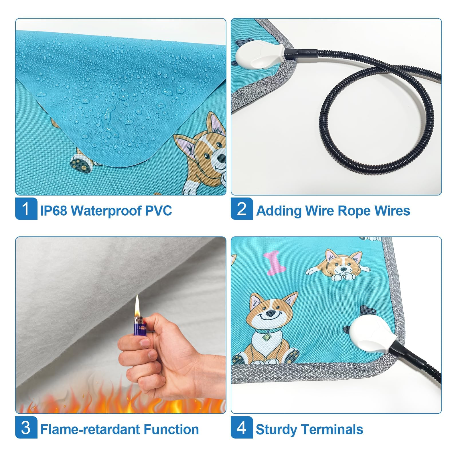GOLOPET Cat Heating Pad 18x18 in Pet Heating Pad for Cats Waterproof Smart Thermostat Switch, Adjustable, Adding Wire Rope Wires Cat Warming Pad-Blue