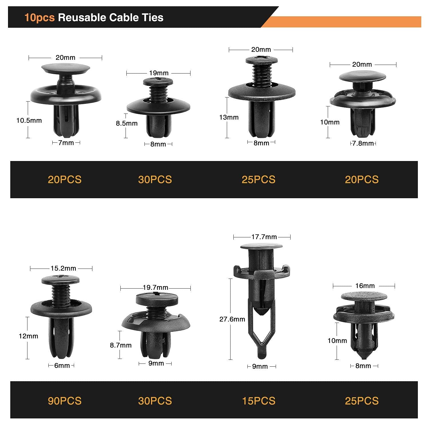 • 【UNIVERSAL FIT KIT】- The kit contains 16 types of most common sizes of fastener clips, suitable for the OEM replacement in 6-10mm hole sizes,that you’ll always have the right size.