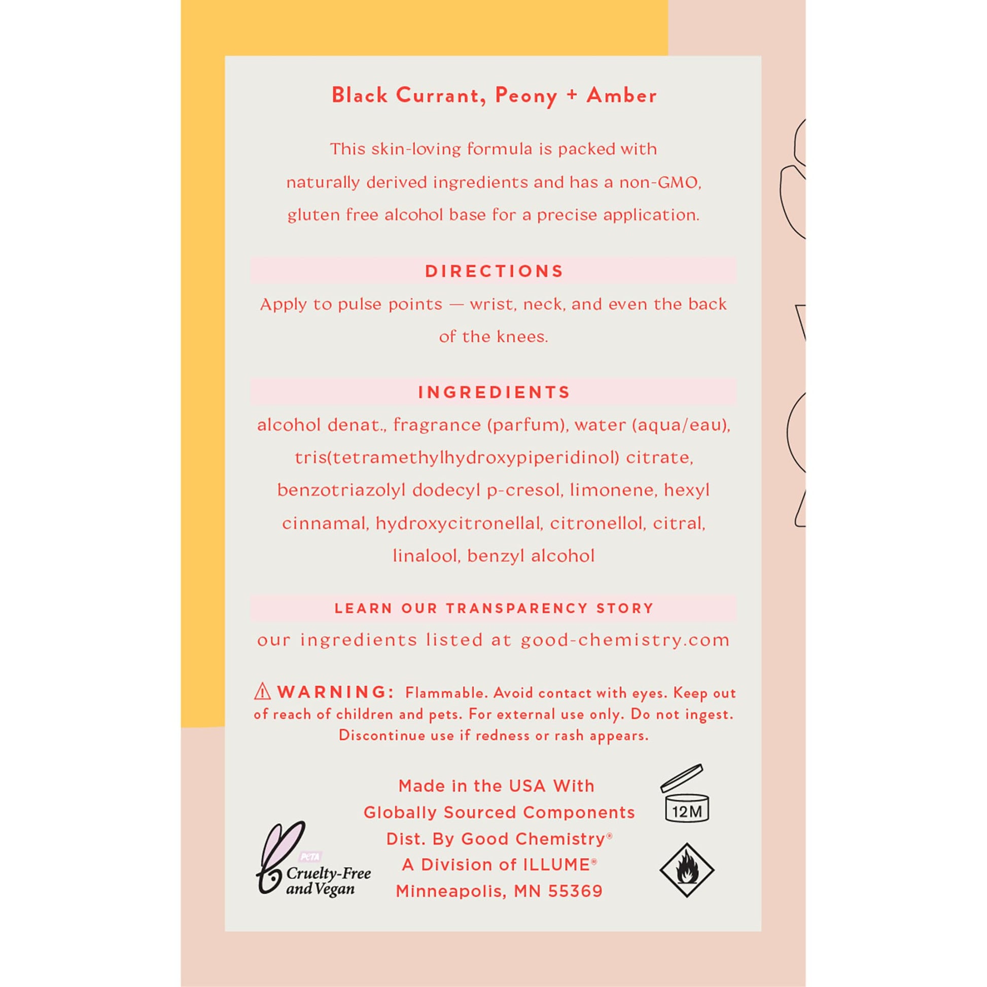 • Contains essential oils; PETA Cruelty Free and Vegan perfume