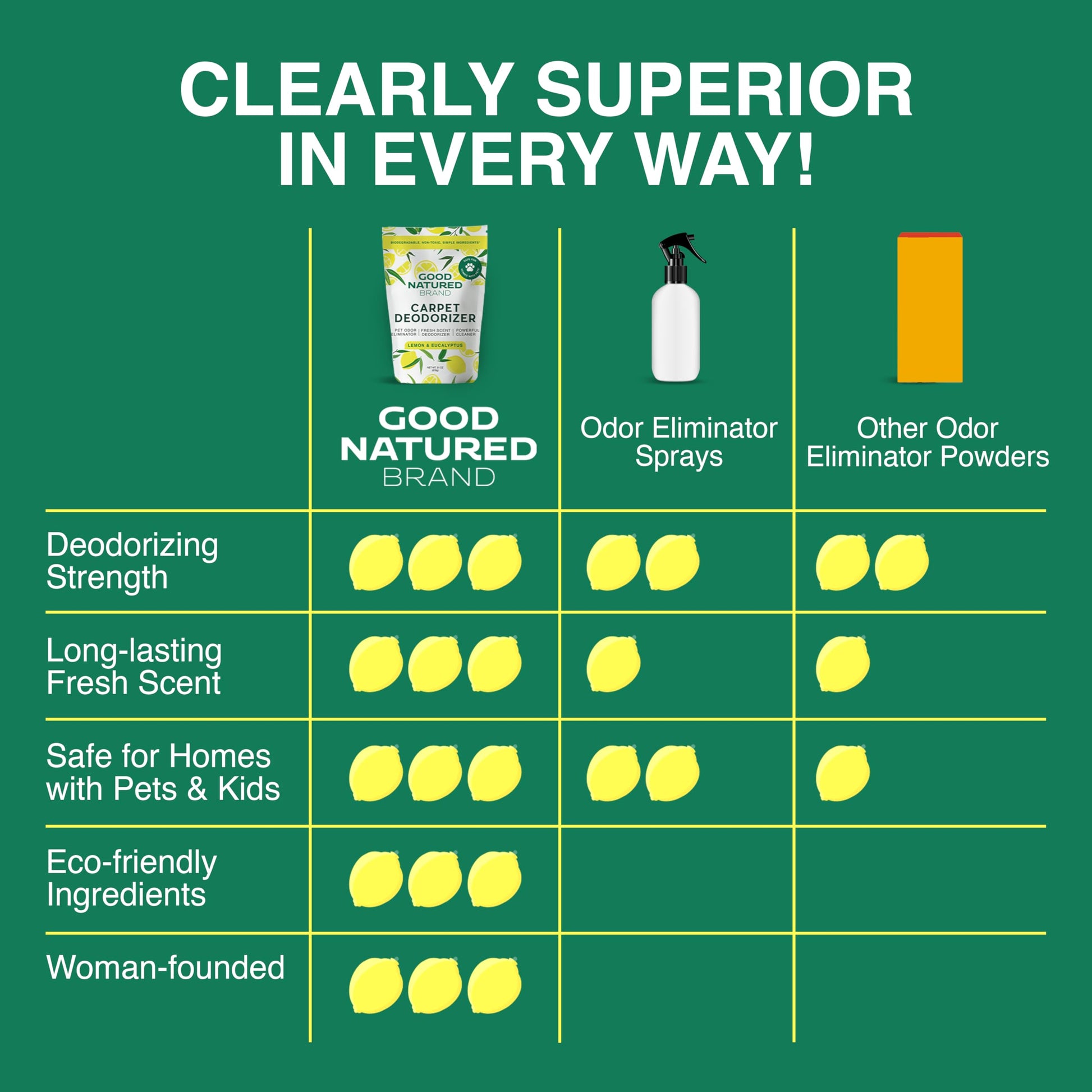 Good Natured Brand | Carpet Deodorizer & Freshener Powder | 31 oz Pet Odor Eliminator for Strong Odor & Pet Urine | Fresh Natural Lemon & Eucalyptus Scent | Safe for Homes with Pets