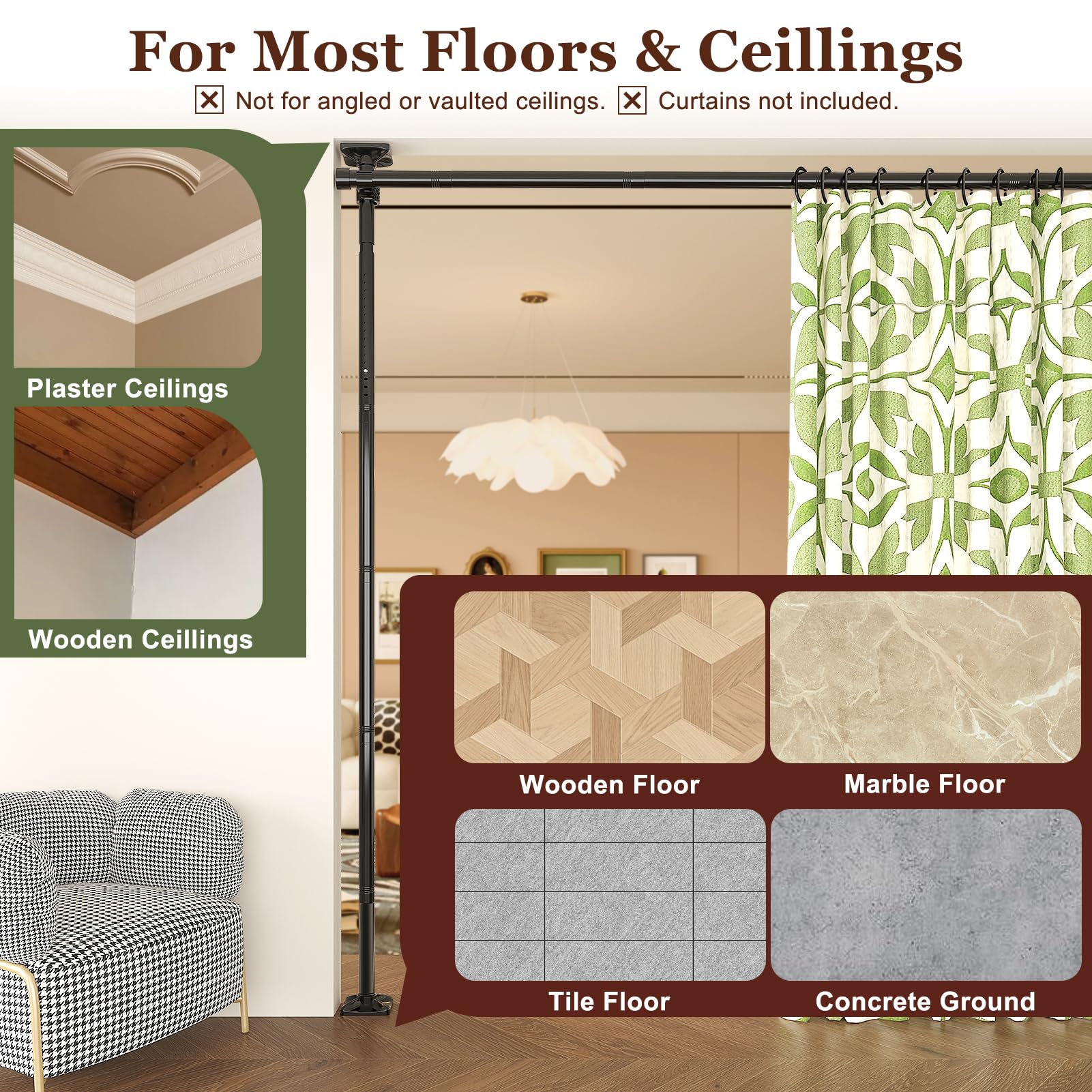• 【No Drill & No Damage】This room divider offers strong floor-to-ceiling tension support without drilling, preserving your walls or ceilings from damage or leaving marks. Suitable for rental homes, apartments, dormitories, and other temporary or short-term spaces. Enjoy the flexibility to adjust its position or change styles with curtains anytime, making it a effortless home improvement solution.