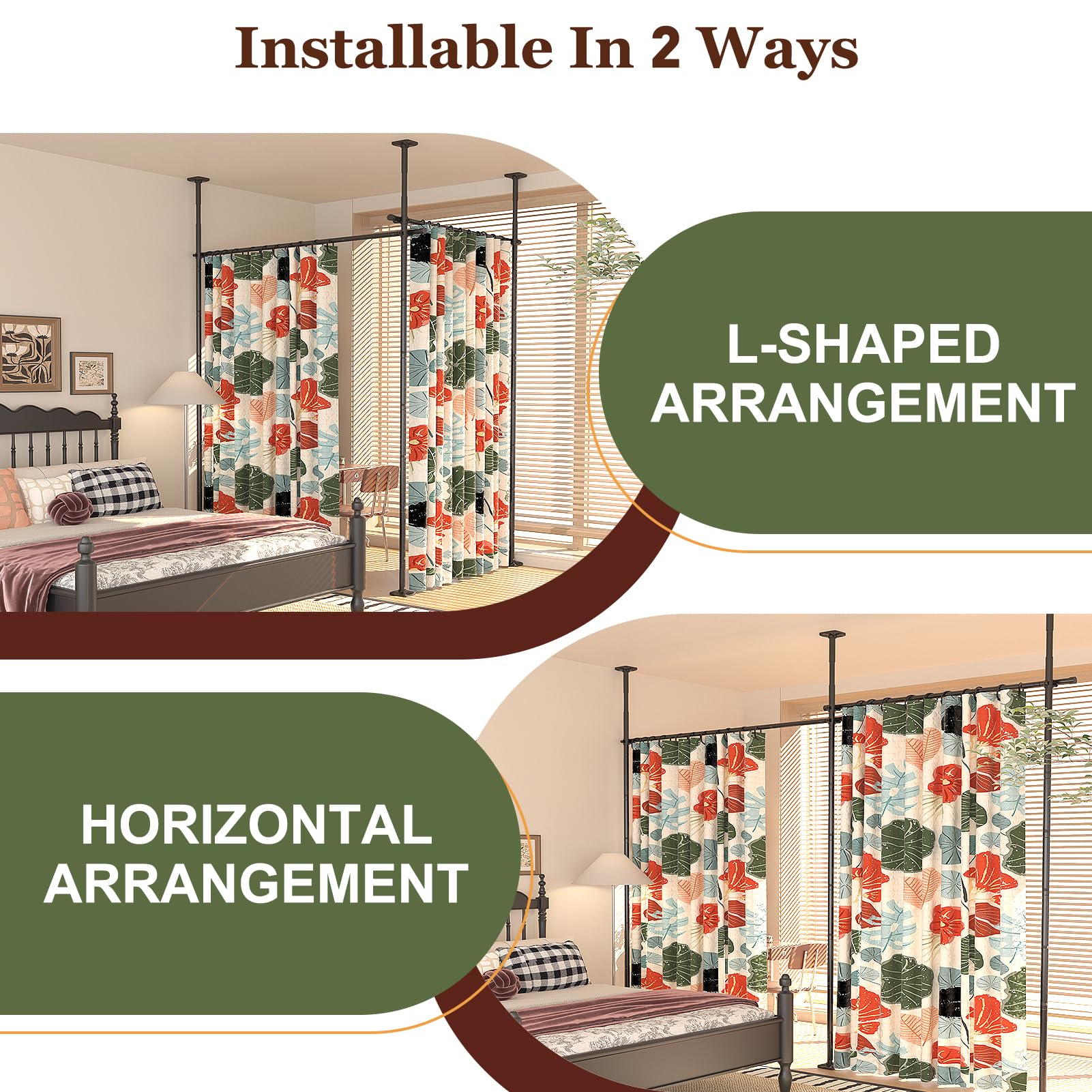 • 【Not Only For Bedroom】The floor-to-ceiling self-standing tension poles also function as space dividers in living rooms, bathrooms, dressing rooms, sublets, shared accommodations, studios, offices, basements, and doorways. Available in 2 practical configurations: I-shaped for straightforward space separation and L-shaped for corner placement to create intimate areas and allowing you to enjoy your personal space to the fullest.