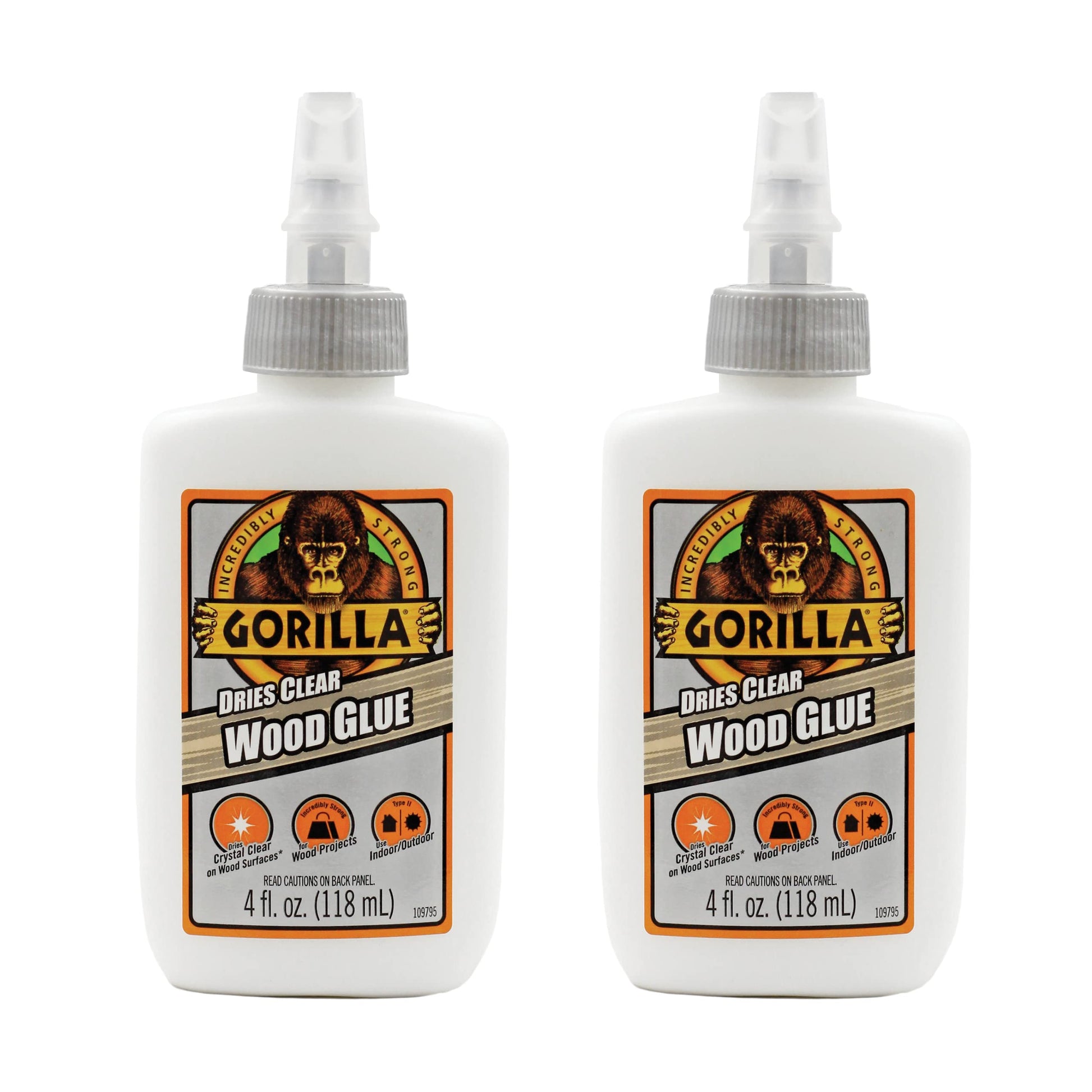 Gorilla Dries Clear Wood Glue, 4 Ounce Bottle (Pack of 2) - Water Resistant for Indoor or Outdoor Projects and Repairs