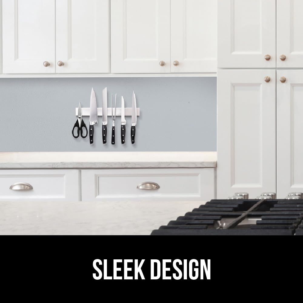 • EASY RELEASE: never struggle to remove knives and other objects; the magnetic knife holder allows for easy release to provide seamless usage every time; designed with a .6 inch clearance between the knives and the wall to help prevent knuckle scraping when reaching for items