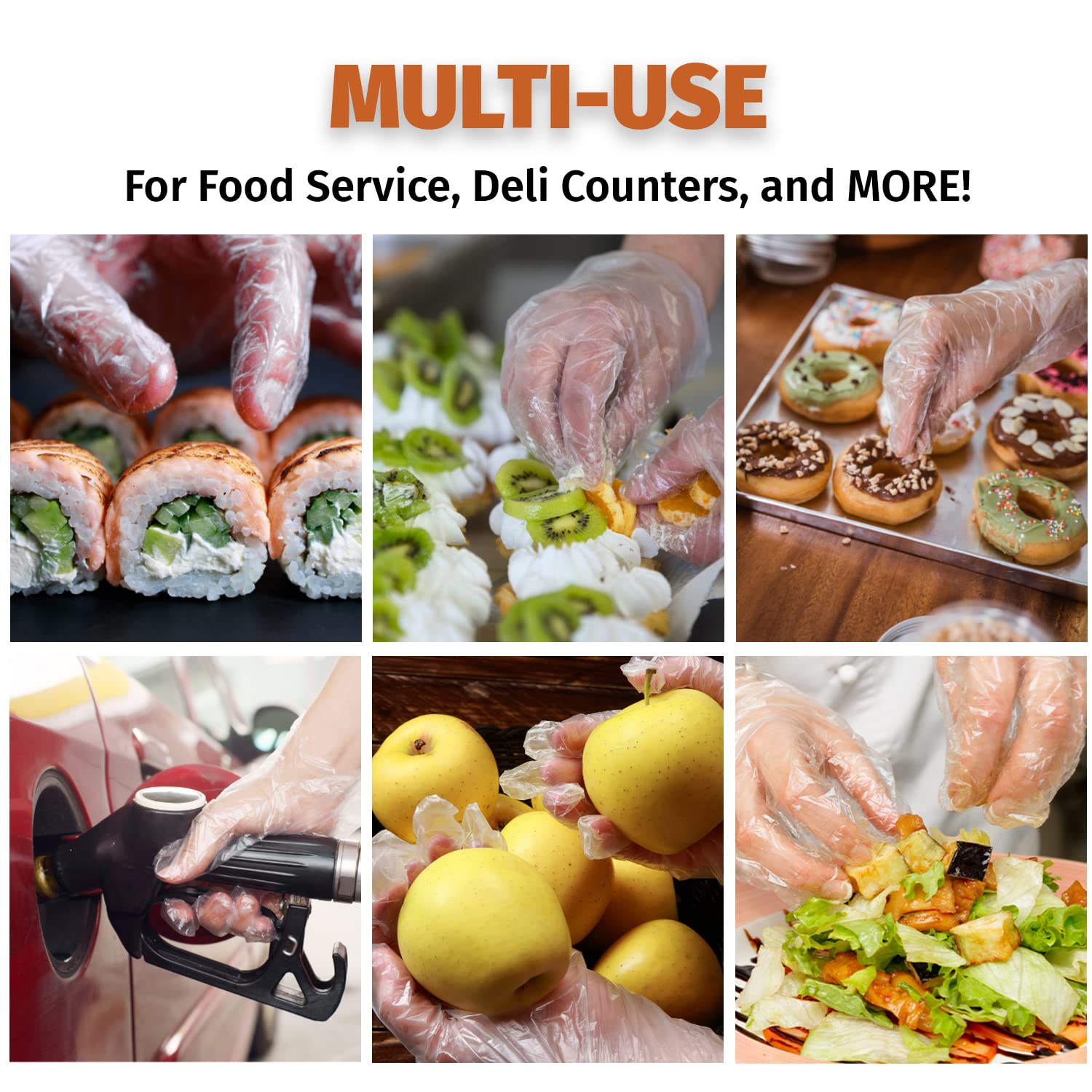 • ✅ FOOD SAFE GRADE & BPA FREE - Great for food handling and hospitality industries, such as party dining and MORE! This BPA Free material meets the requirements for food contact. Keep food clean from dirt, dust and liquids with our PE gloves.