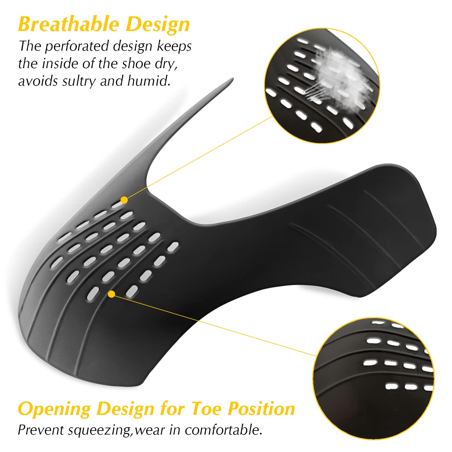 • KEEP YOUR SHOES LOOKING NEW - Crease protectors for most sneakers. It is an insert similar to a shoe tree that can be inserted into the toe of a shoe to improve creasing in most shoes, especially sneakers. It not only makes new shoes less likely to wrinkle, but also improves the appearance of old wrinkled shoes.