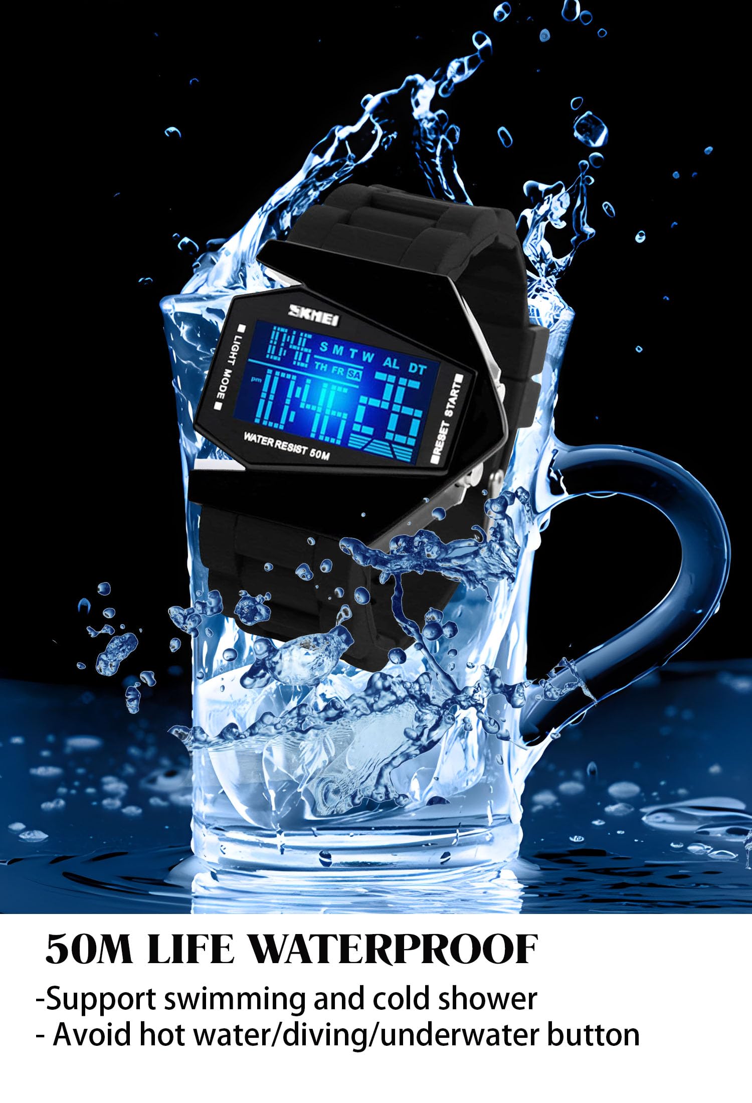 * 5ATM Water Resistant Digital Airplane Shaped Sports Watch with Silicone Strap, LED Colorful Light