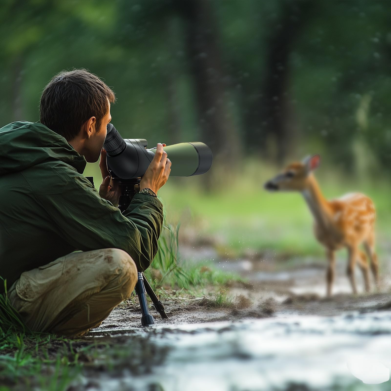 • Powerful Zoom & Smooth Focus System - With variable 20x to 60x magnification and a dynamic lens focusing mechanism, it allows easy and precise zooming for detailed long-range viewing—ideal for archery, birdwatching, wildlife observation, hiking, camping, scenery viewing, and even stargazing.