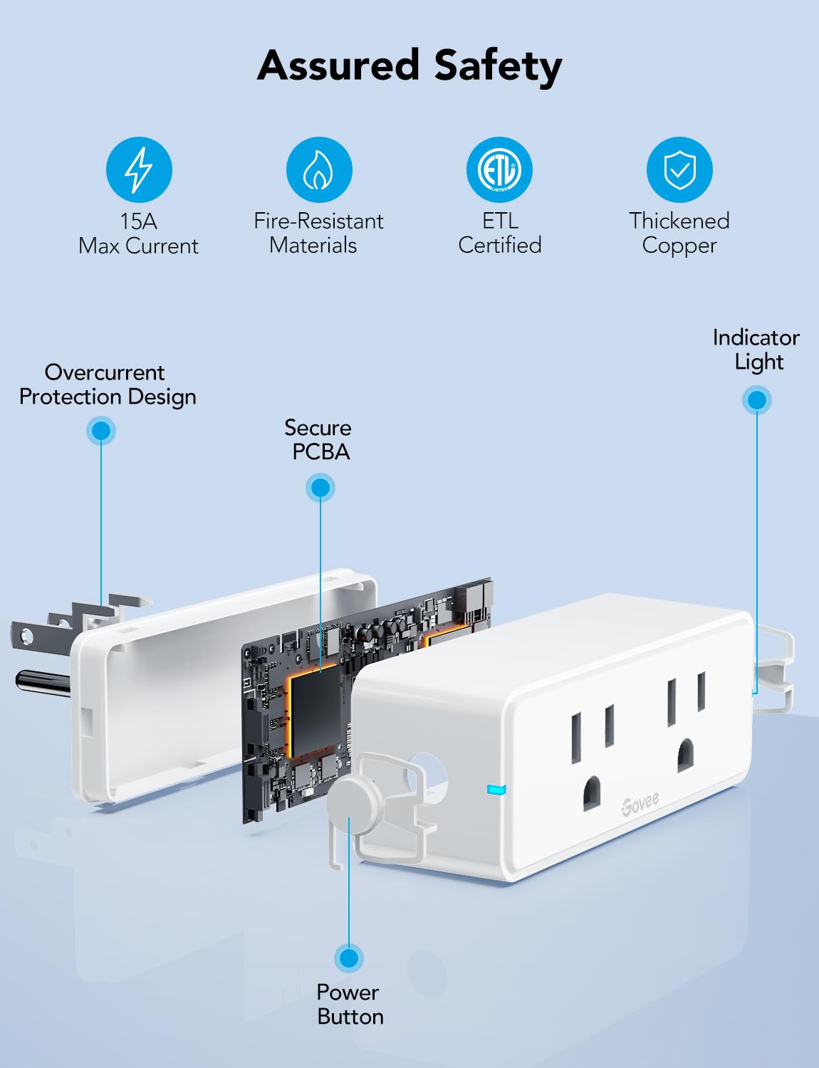 • Smart Voice Control: Compatible with Alexa and Google Assistant for hands-free on/off control of your plugged-in devices and appliances. Note: Users must create a new Govee Home App account or be logged in to use this Wi-Fi Plug.