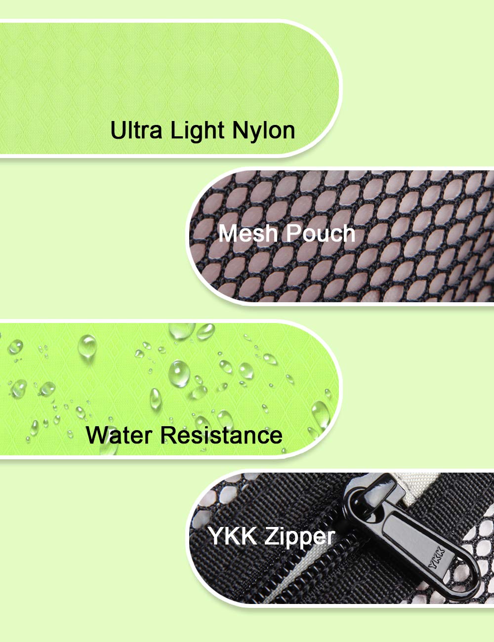 • LOTS OF POCKETS: In order to make things well organized, we designed of lots pockets for partition articles. Main compartment is large enough for bottles. In one side, a center pouch opens with a webbed waterproof zipper pouch. And in another side has been divided into 2 elastic mesh pouches. Also there is one zipper pouch for keeping small items outside in back of the pouch.