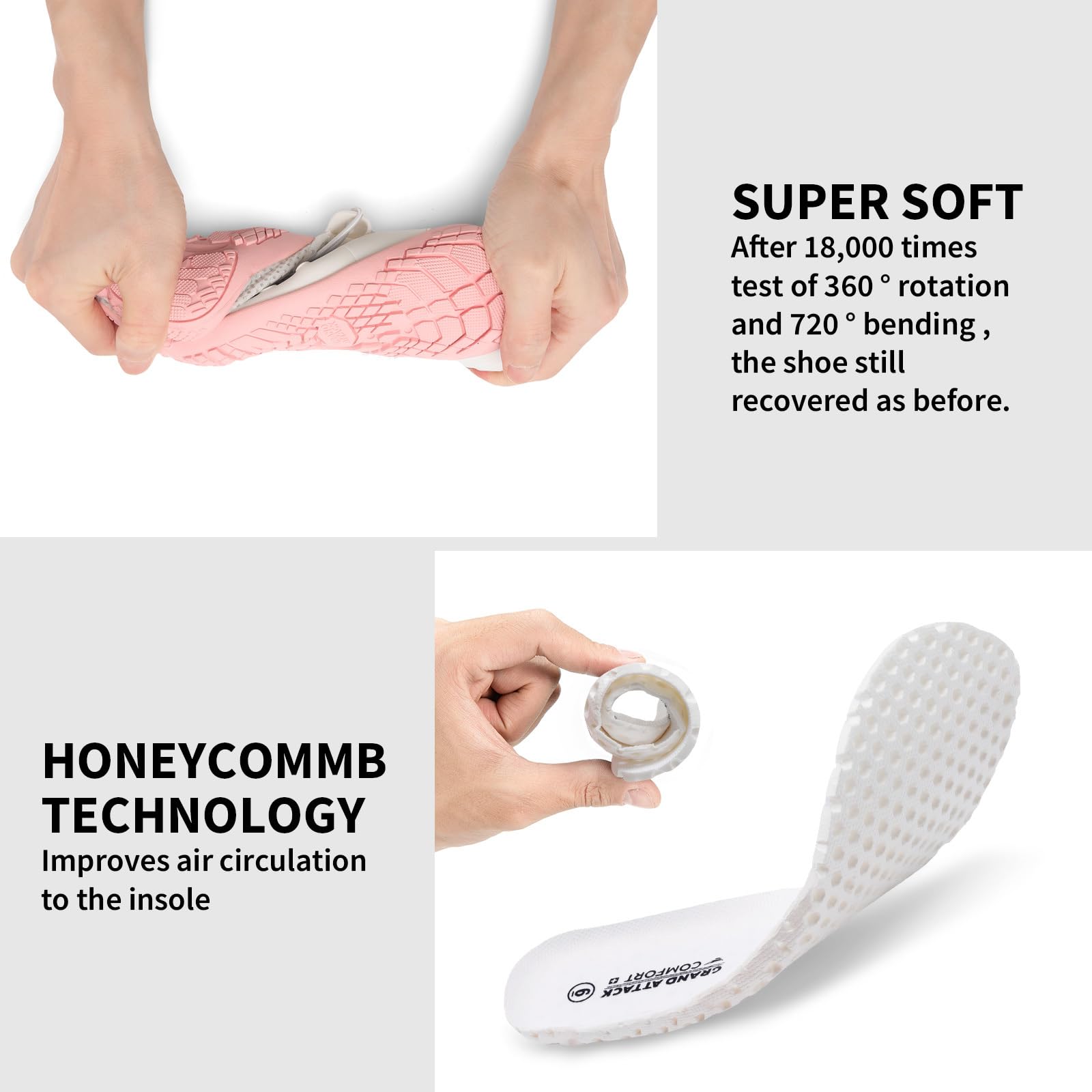 Grand Attack Barefoot Shoes Women,Wide Toe Box Minimalist Zero Drop Walking Shoes Lightweight Cross Training Trail Running Wrestling Weightlifting Fitness Gym Sneakers White Pink Size 8.5
