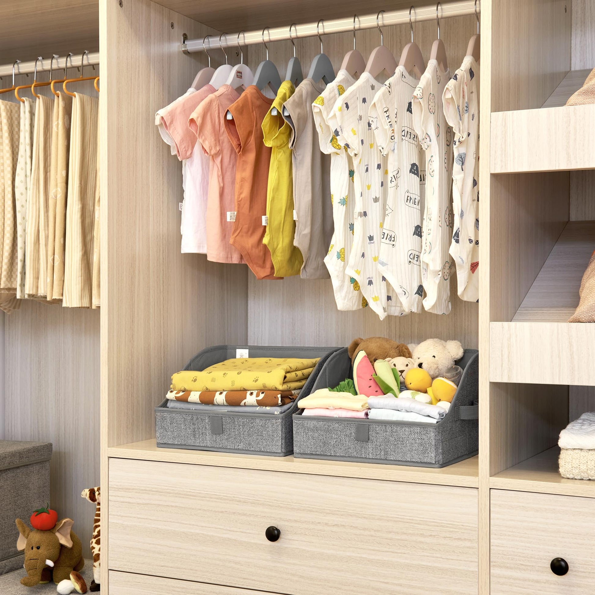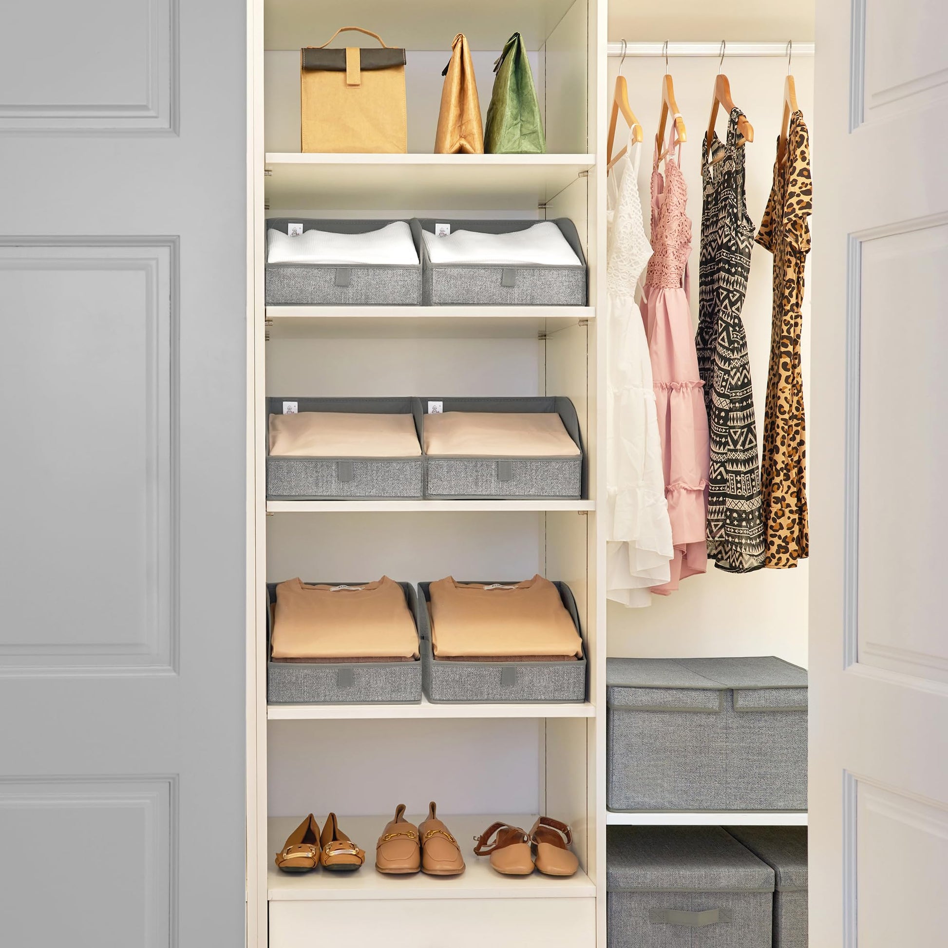 • Versatile Storage - Trapezoid design lets finding things convenient, also allows easy access when put on the top shelf. Ideal closet storage bins for storing clothes, bags, yarns, toys, DVDs, linens, and more.