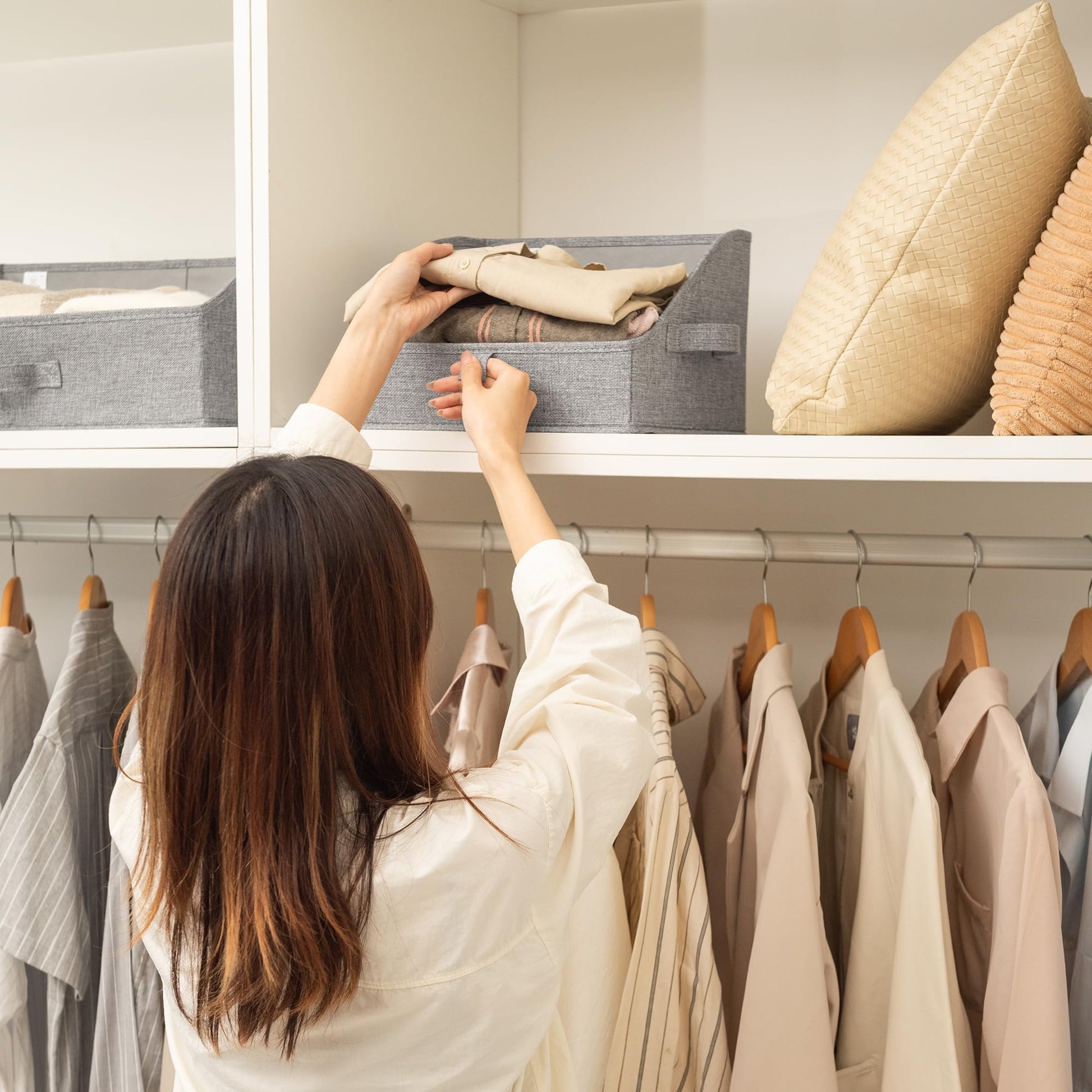 • Premium Quality - Made of durable fabric and reinforced with cardboard, the storage bins for closets are rigid to keep the shape.