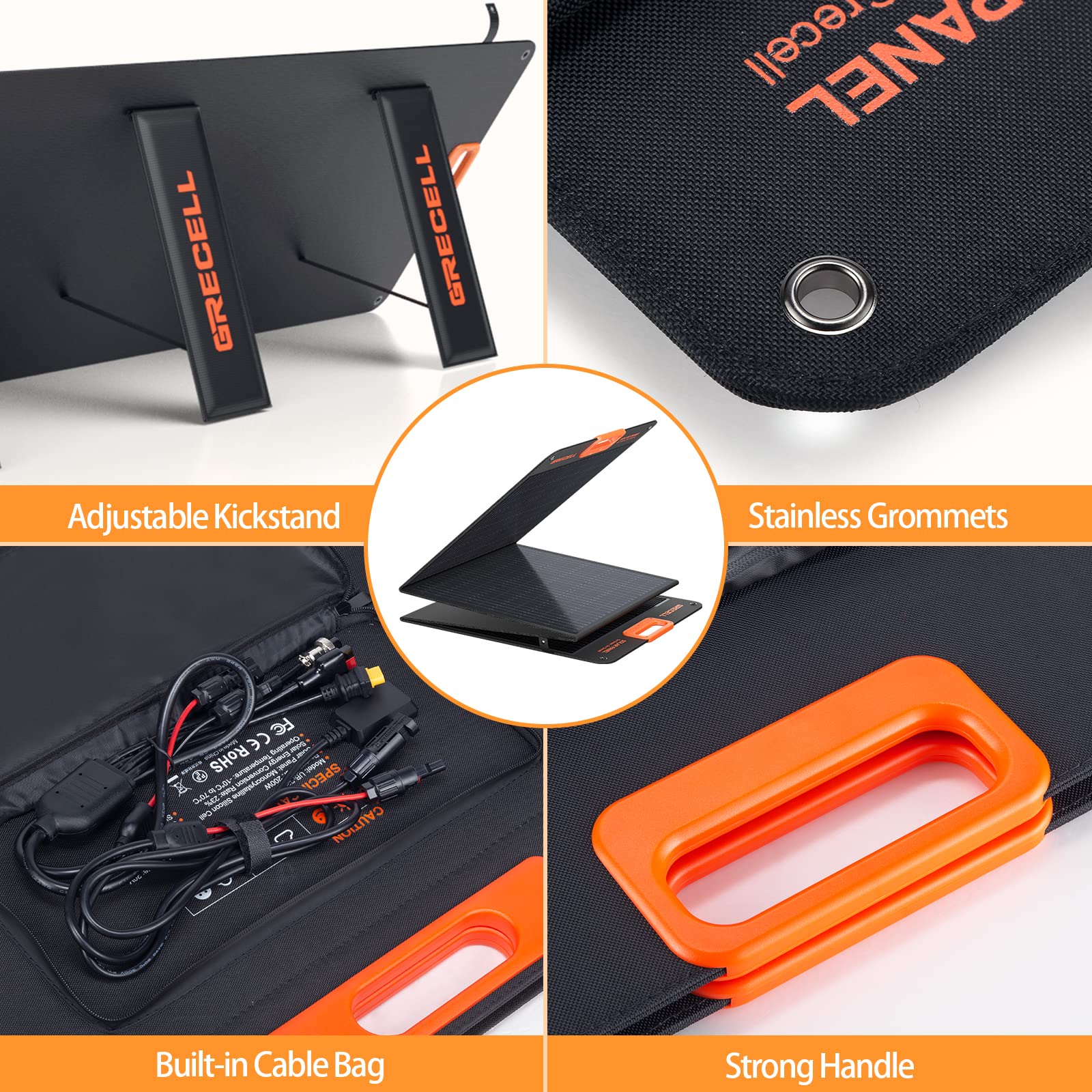 GRECELL 200W Portable Solar Panel for Power Station, Foldable Solar Charger w/ 4 Kickstands, IP65 Waterproof Solar Panel Kit w/DC XT60 Anderson Aviation Output for Outdoor RV Camper Blackout