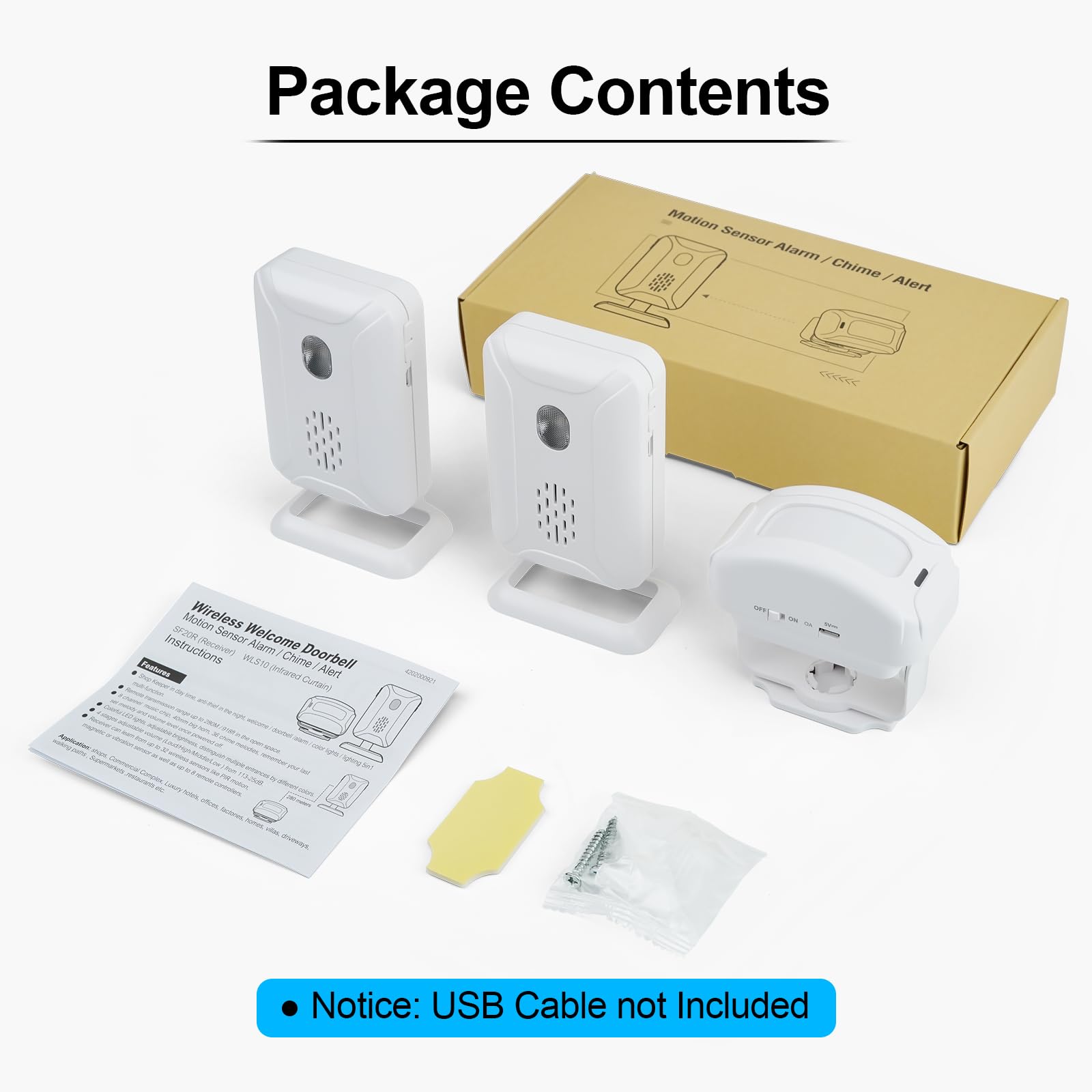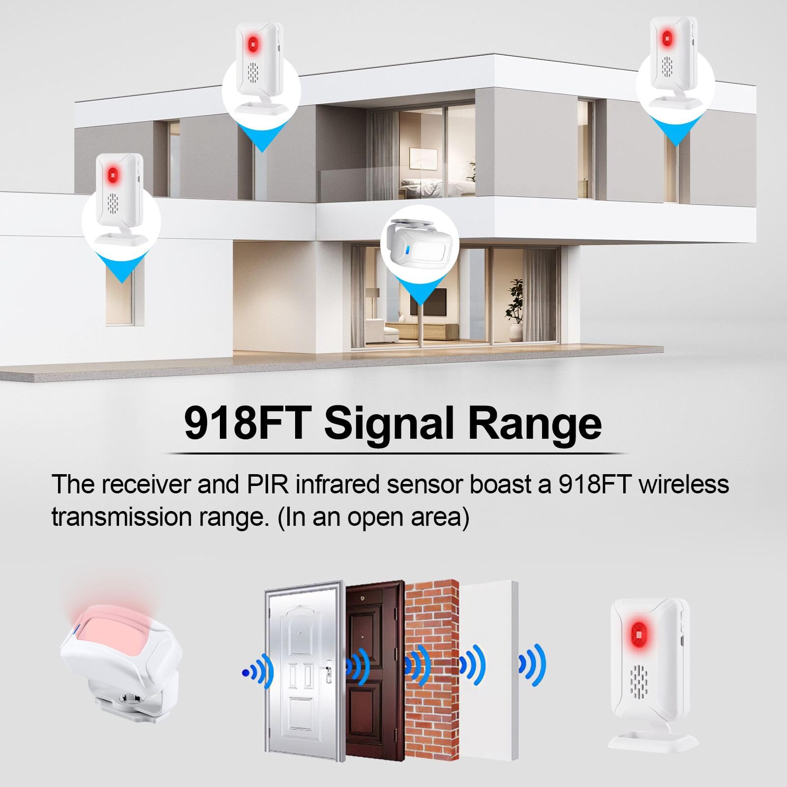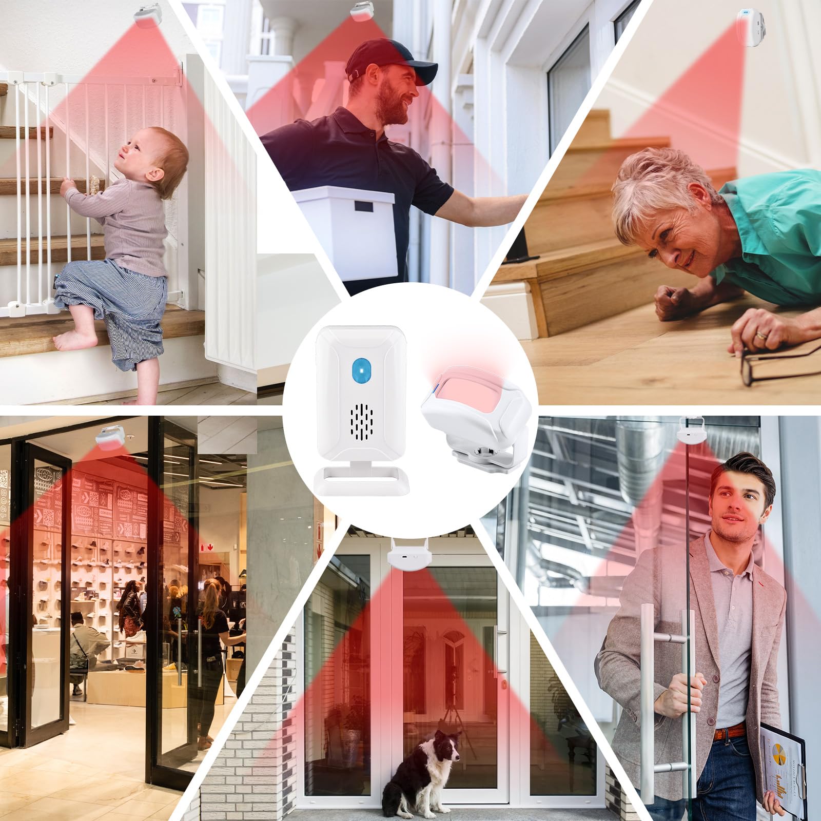 • 【Sensitive & Wide Wireless Range】The motion sensor doorbell entry alert door chime for business stores catches movement from a broad scope of space, with a working Range of up to 280m/918ft between the receiver and motion sensor. The detection range of the infrared sensor is approximately 2-8m/7-26ft to keep you informed and safe. You can put the motion sensor detector on the porch, gallery, or mailbox and put the receiver in your house.