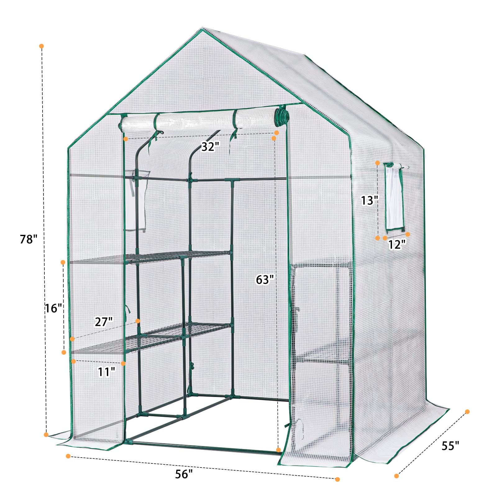 • Walkin Greenhouse: 56"(L)*55"(w)*78"(H)outdoor walk greenhouse is convenient to enter and exit to take care of plants. For example, watering and fertilizing, etc.