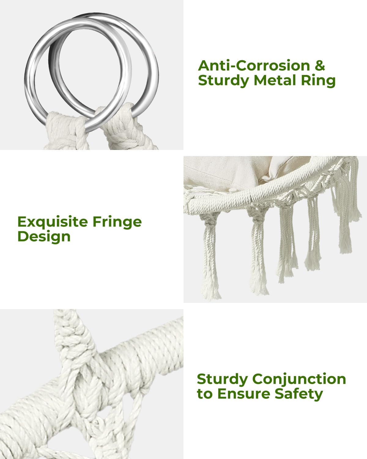 Greenstell Hammock Chair, Macrame Swing Chair with Comfy Cushion, Boho Hanging Chair for Outdoor & Indoor, Perfect for Bedroom, Patio, Balcony, Hold up to 330Lbs, White