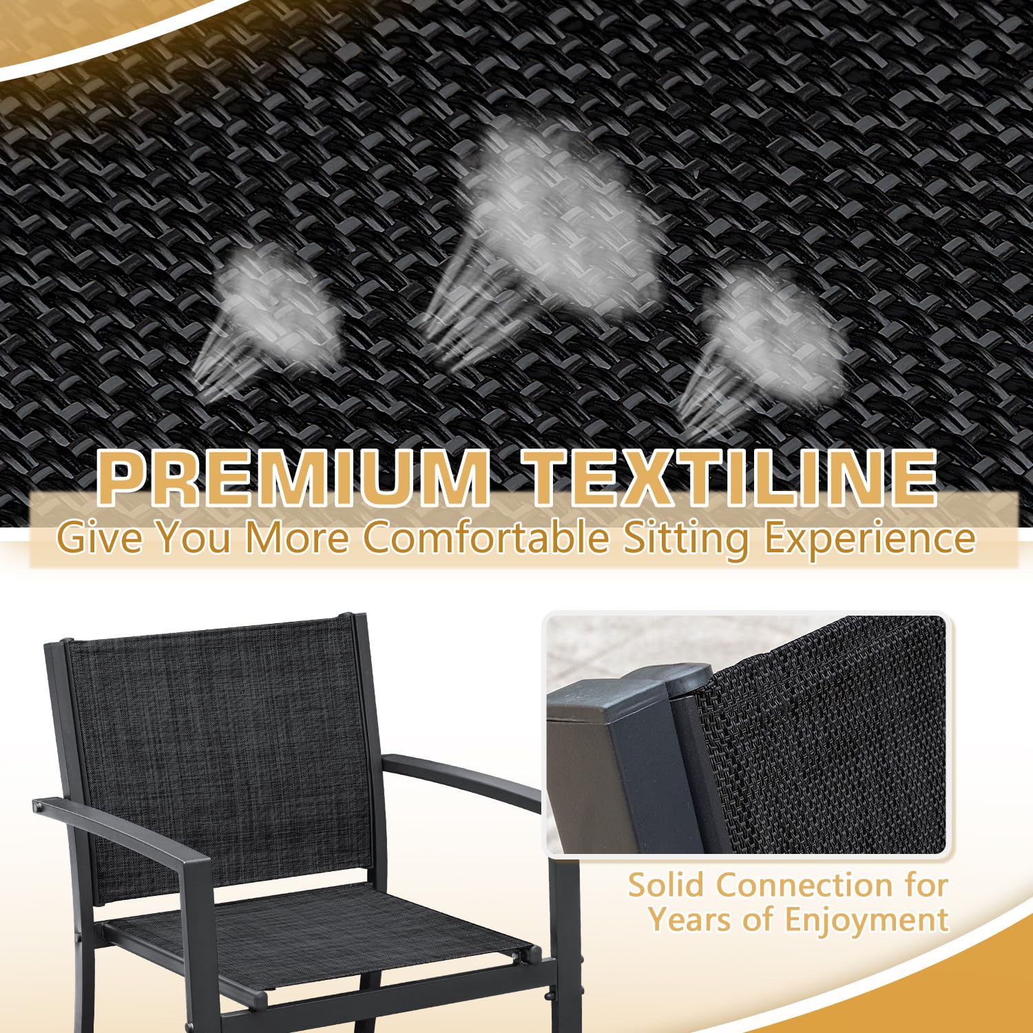 Greesum 4 Pieces Patio Furniture Set Outdoor Conversation Textilene Fabric Chairs for Lawn, Garden, Balcony, Poolside with A Glass Coffee Table, Black