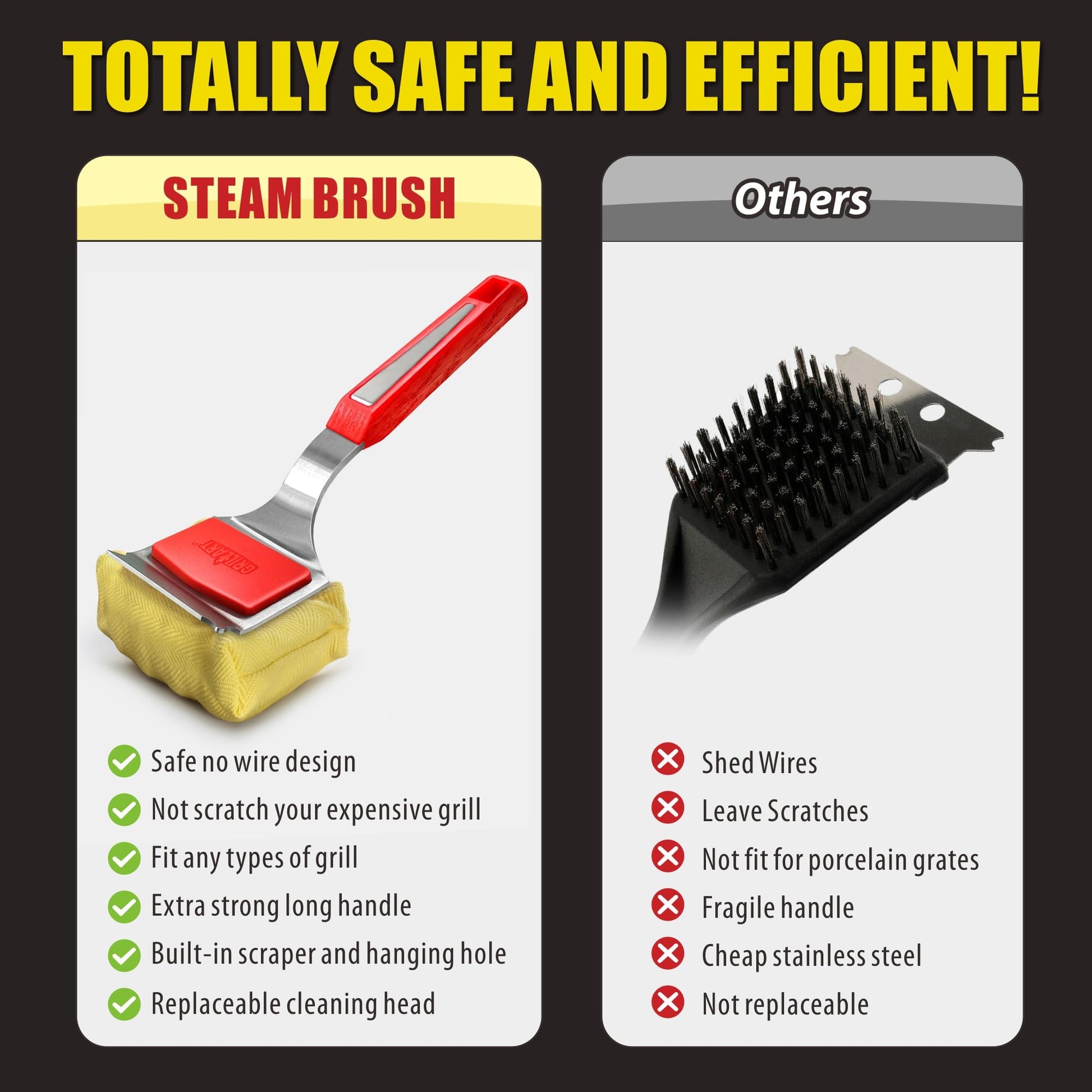 • Safe and Efficient - SteamWizards cleaning can save a lot of elbow grease when dealing with those stubborn residues. With a safe bristle-free grill brush, you don't have to worry about swallowing those dangerous wire bristles that can break off and end up in your food. It's safe and efficient!