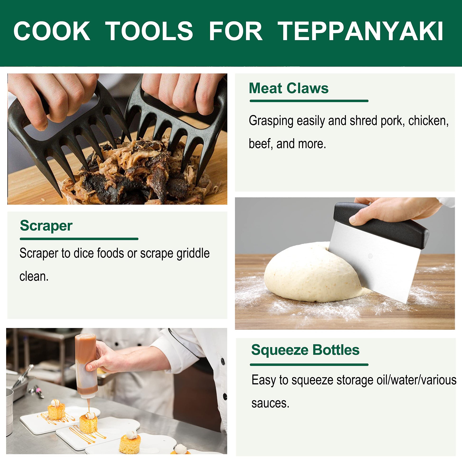 • Professional Chef's Choice - Featured the properties of anti-scratching and anti-slip which is relying on a combination of well-design, exquisite craftsmanship and solid construction, these griddle tools are used by professionals and establishments for their kitchen. With the complete flat top griddle accessories set, you could make delicious burgers, juicy steak, perfect pancakes and flavorful cuisines from start to finish with ease like a pro!