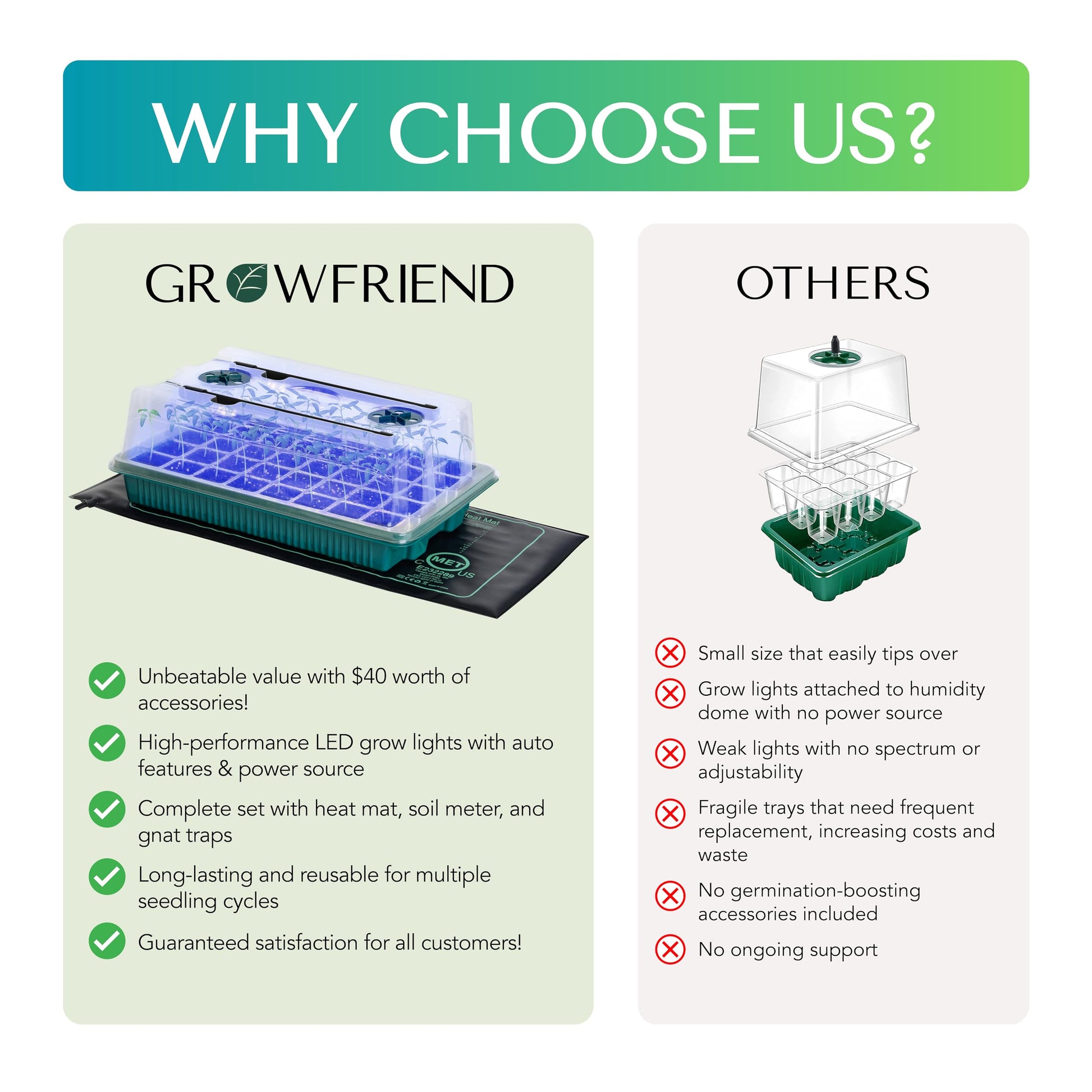 GROWFRIEND Upgraded Seed Starter Tray with Grow Lights and Heat Mat, 3-in-1 Soil Meter, & Sticky Gnat Traps, 40-Cell Seed Growing Tray, Germination & Plant Propagation Station for Indoor Plants