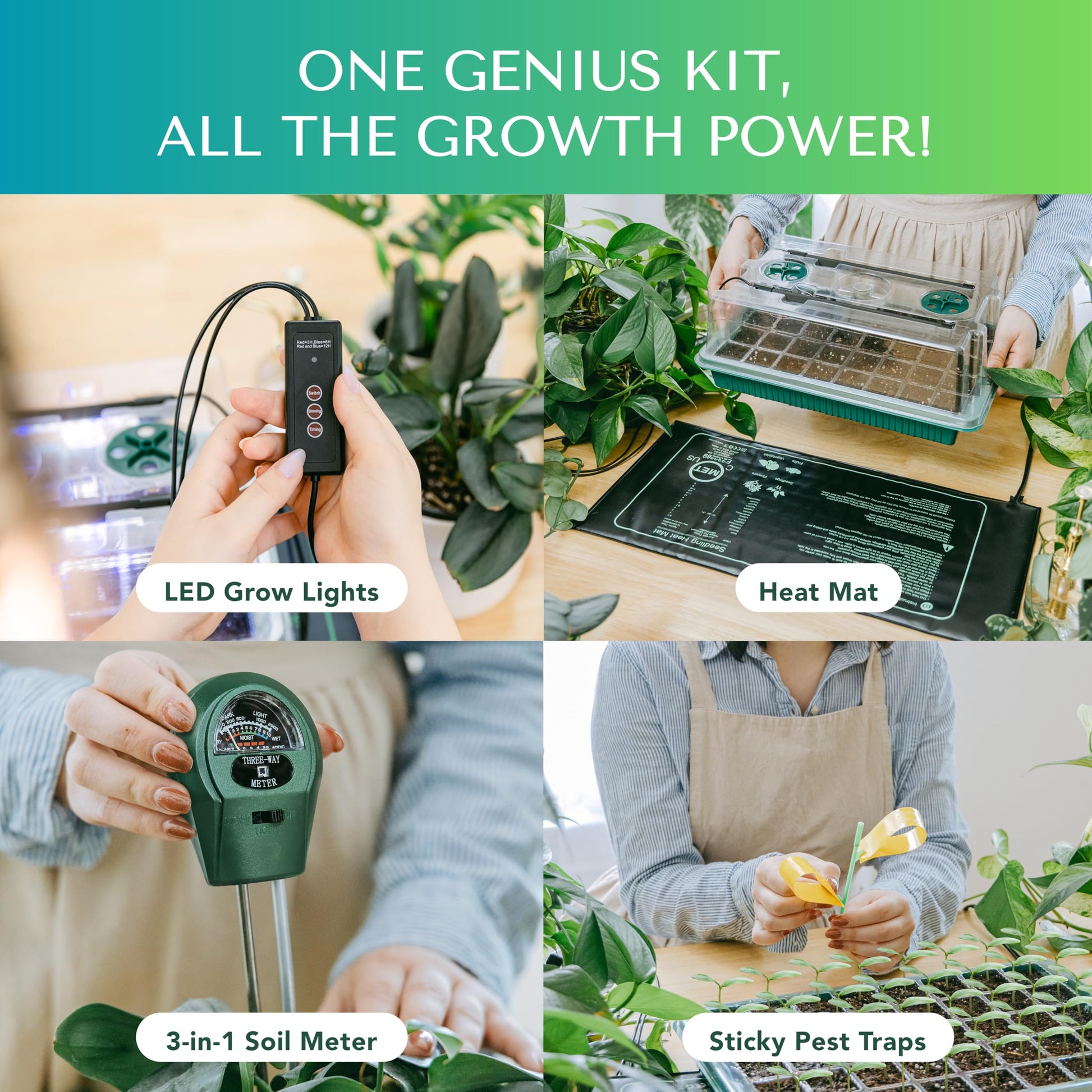 • [Complete Seed Starter Kit for Indoor Gardening] Start your gardening journey with our all-in-one seed starter kit, designed for successful seed germination and healthy seedlings. This premium kit includes a heavy-duty 40-cell seed starter tray with drainage holes, two LED grow lights to mimic natural sunlight, a 10"x20" seedling heat mat for ideal temperature control, a 3-in-1 moisture meter for accurate soil monitoring, sticky gnat traps to protect plants from pests, and a bonus gardening eBook with expert seed-starting tips. Perfect for growing herbs, vegetables, microgreens, and flowers indoors, this kit provides everything you need for strong and vibrant plants.