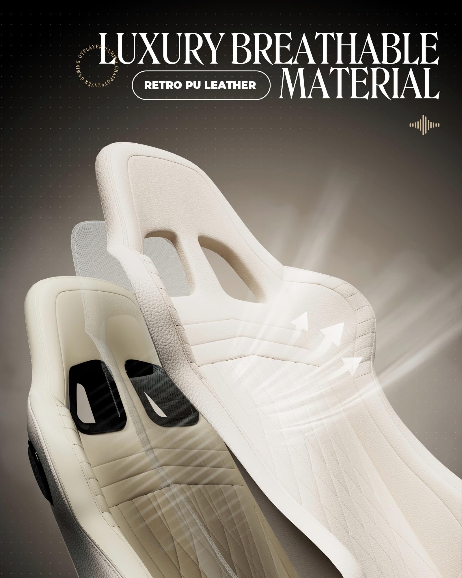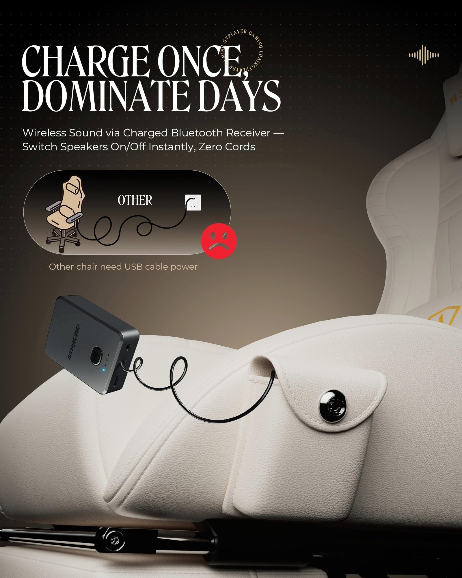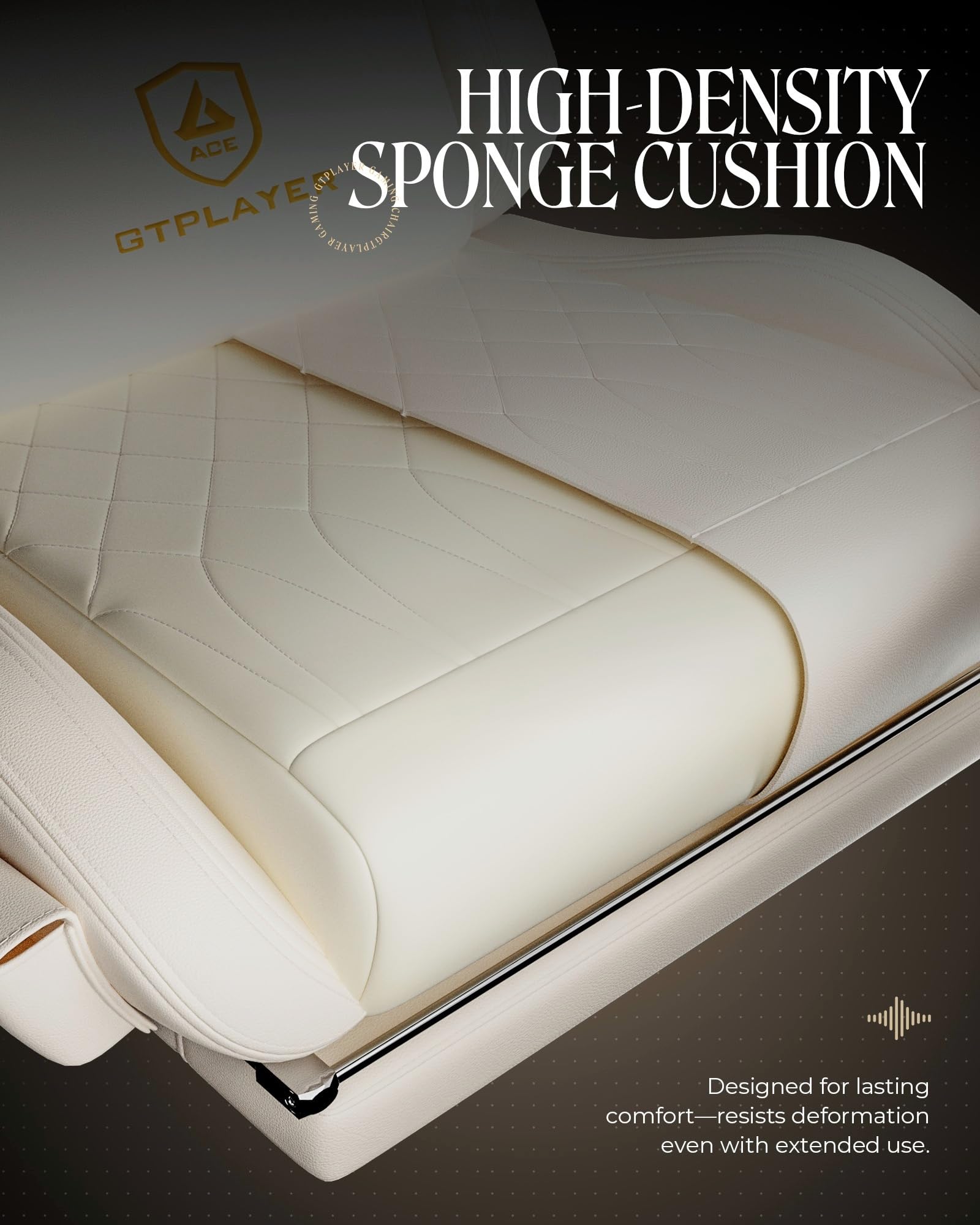 GTPLAYER Gaming Chair with Speakers, Video Game Chairs with Footrest, PC Gamer Chairs for Adults - Padded High Back Ergonomic Reclining Silla Gamer, Linkage Armrest, Ace Pro, Ivory