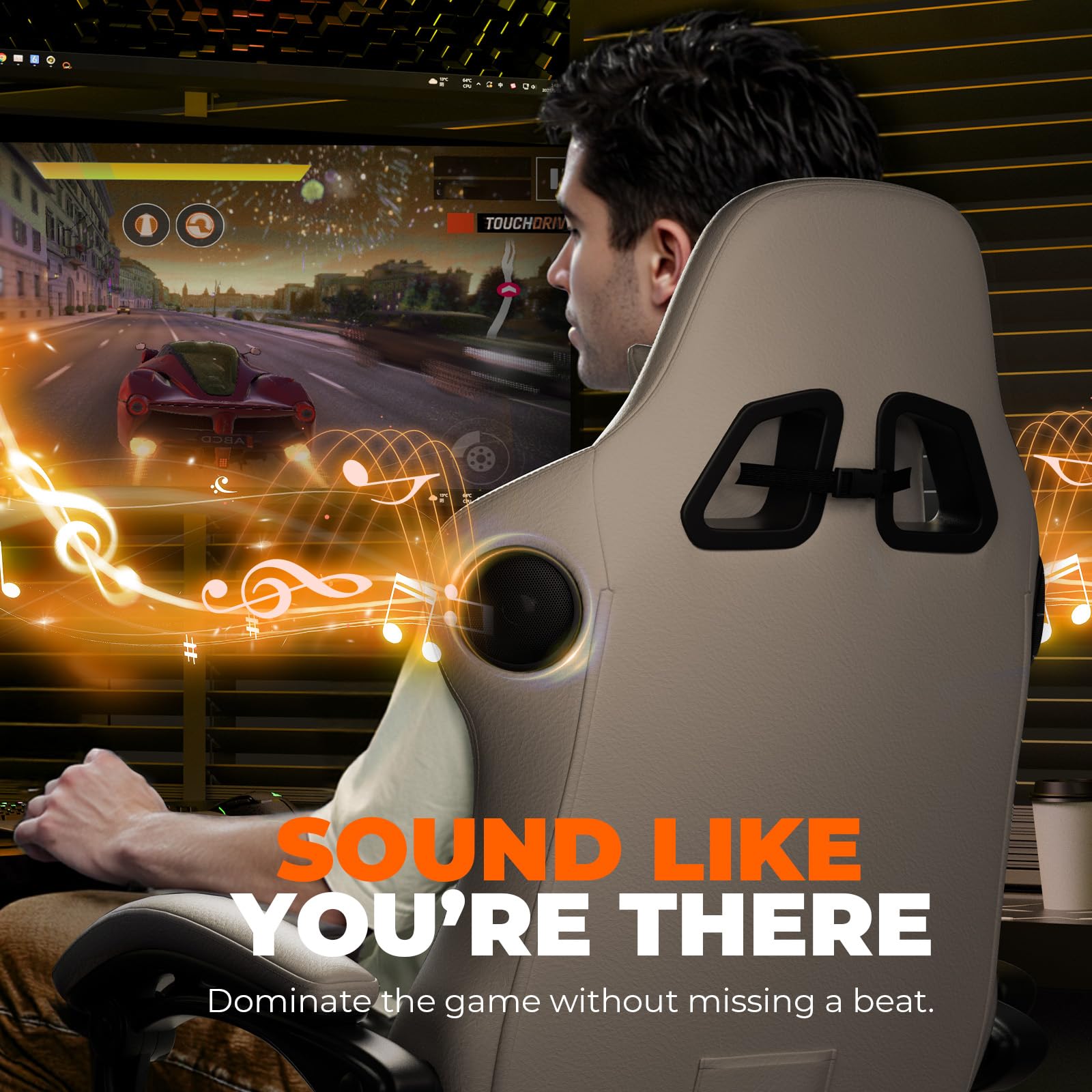 GTPLAYER Gaming Chair with Speakers, Video Game Chairs with Footrest, PC Gamer Chairs for Adults - Padded High Back Ergonomic Reclining Silla Gamer, Linkage Armrest, Ace Pro, Ivory New