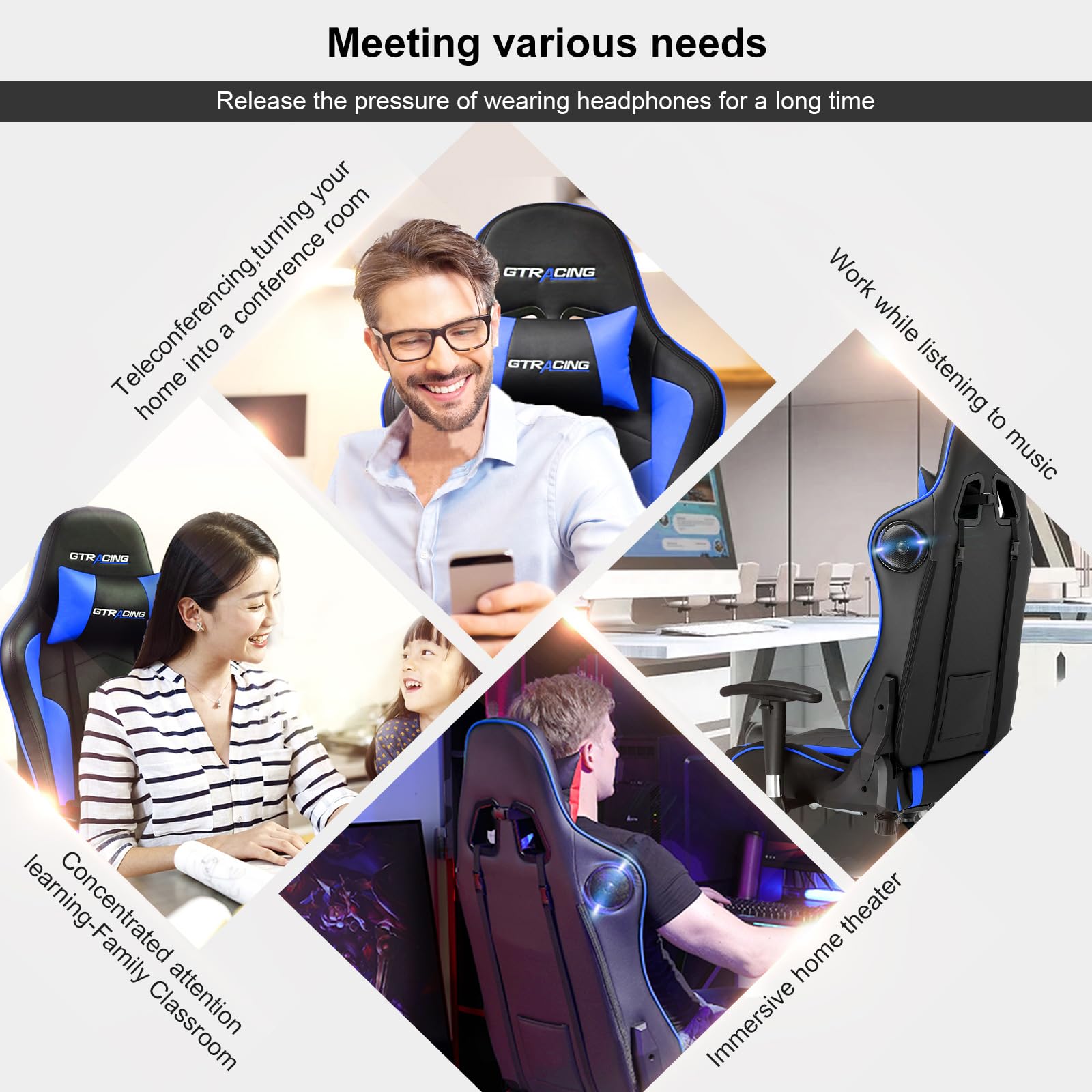 • GTRACING Gaming Chair with Speakers Bluetooth Music Video Game Chair Audio Ergonomic Design Heavy Duty Office Computer Desk Chair