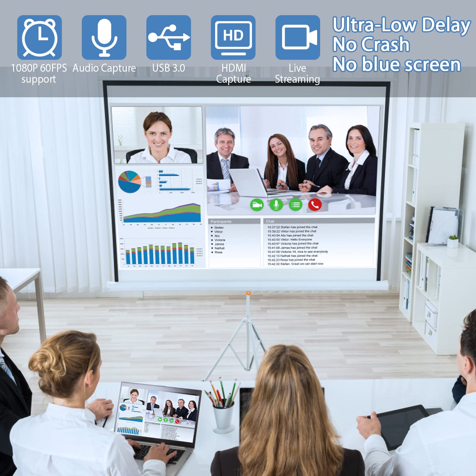 • 【1080P 60FPS Video Capture Card】 This HDMI game capture card is based on USB3.0 high speed transmission port, input resolution up to 4K@30HZ, output resolution up to 2K@30Hz or 1920×1080@60Hz. Type c and USB interface can meet most of the devices in daily life. Easily meet the online capture, real-time recording, online meetings, live gaming and other functions, so you have a better visual enjoyment