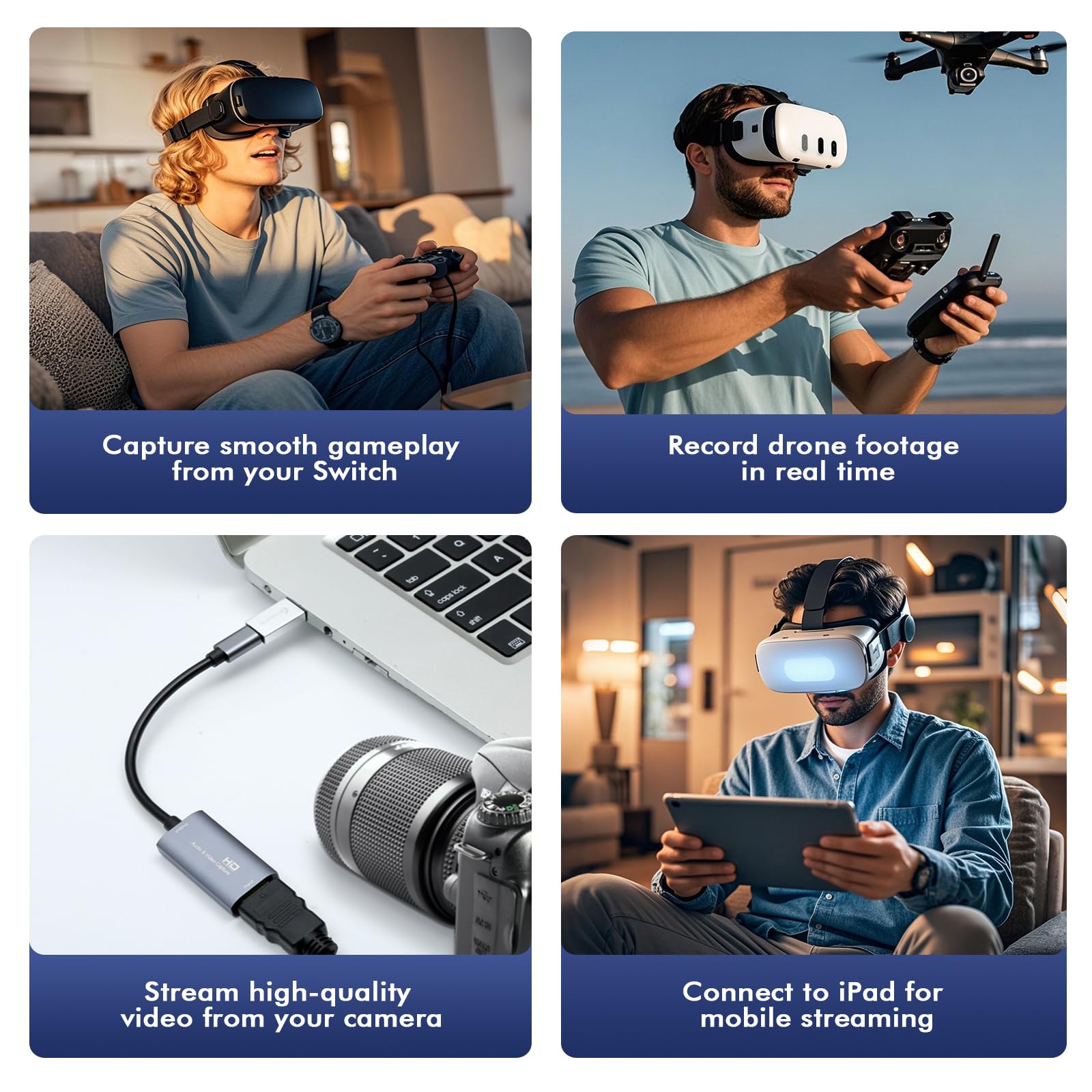 • 【Wide Compatibility USB Capture Card】 Easily streams to Facebook, Youtube or Twitch. With the connection, this HDMI to USB C/3.0 video capture devices can be working on several Operating Systems and various software: Windows 7/ 8/ 10, Mac OS or above, Linux, Android, Laptop, Xbox One, PS3/PS4/PS5, Camera, DVDs, Set Top Box, Webcame, DSLR, Switch/Switch 2, TV BOX, HDTV, Potplayer/VLC, ZOOM, OBS Studio etc.