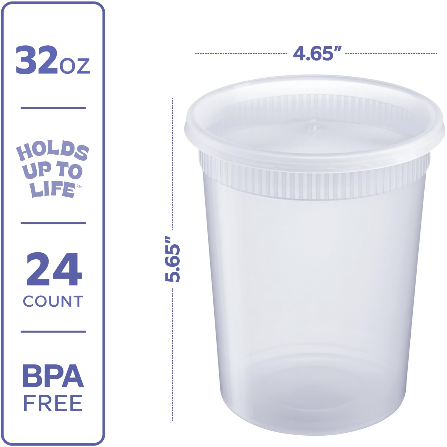 GUSTO [32 oz. - 24 Count Plastic Deli Containers with Lids - Disposable Food Storage Containers With Airtight Lids, Ideal for Soups, Stews, and Meal Prep