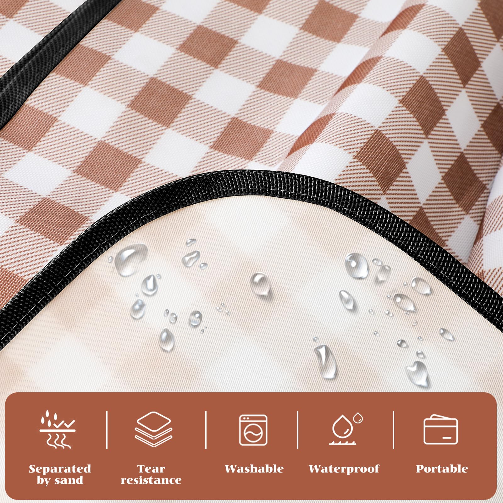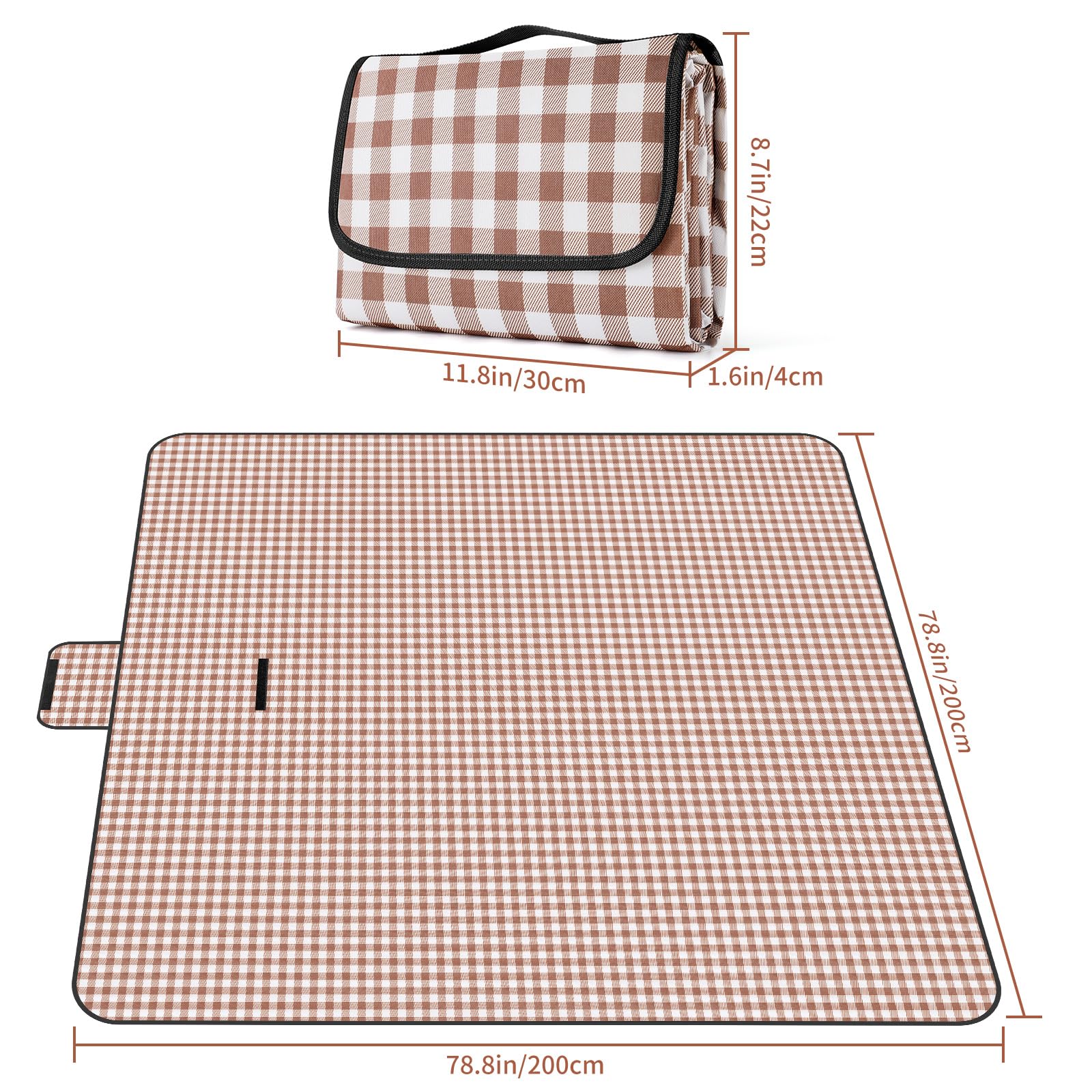 GUSUWU Picnic Blanket Waterproof Beach Rug 80''x80'' Picnic Mat Washable Lightweight with Handle Coffee Checkered for Hiking Travelling Outdoor Camping,Parks