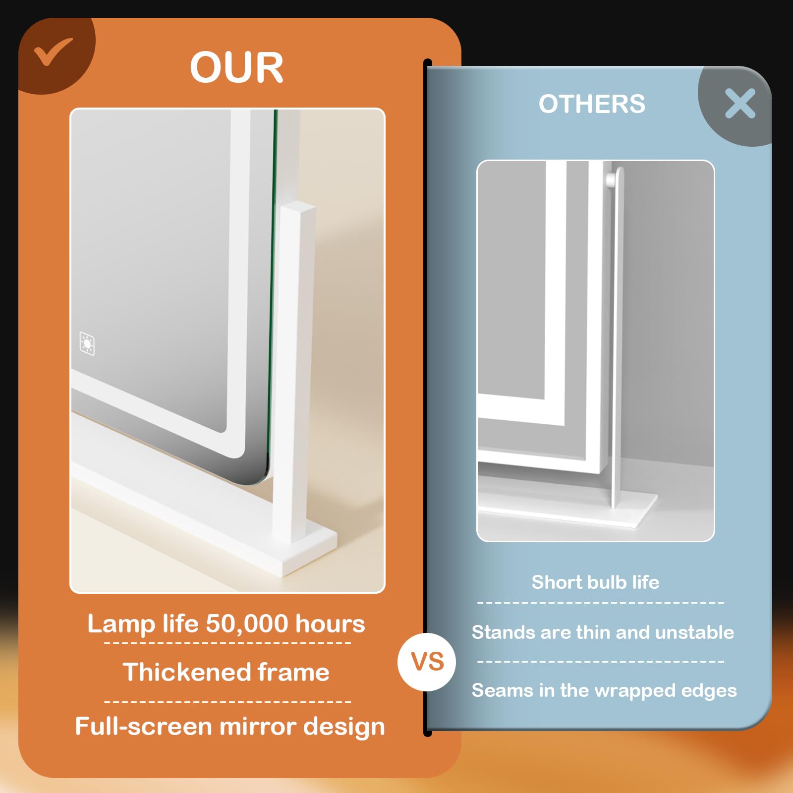 • 👍【Upgrade brightness】Most of the makeup mirrors with light bars on the market only have 120 light beads, which makes consumers feel that the lighting is not enough. We have improved on this! We have a full 180 light beads light bar per meter,which greatly improving the brightness of the makeup mirror.