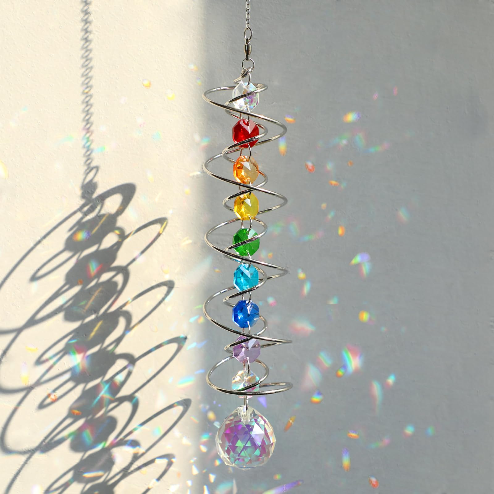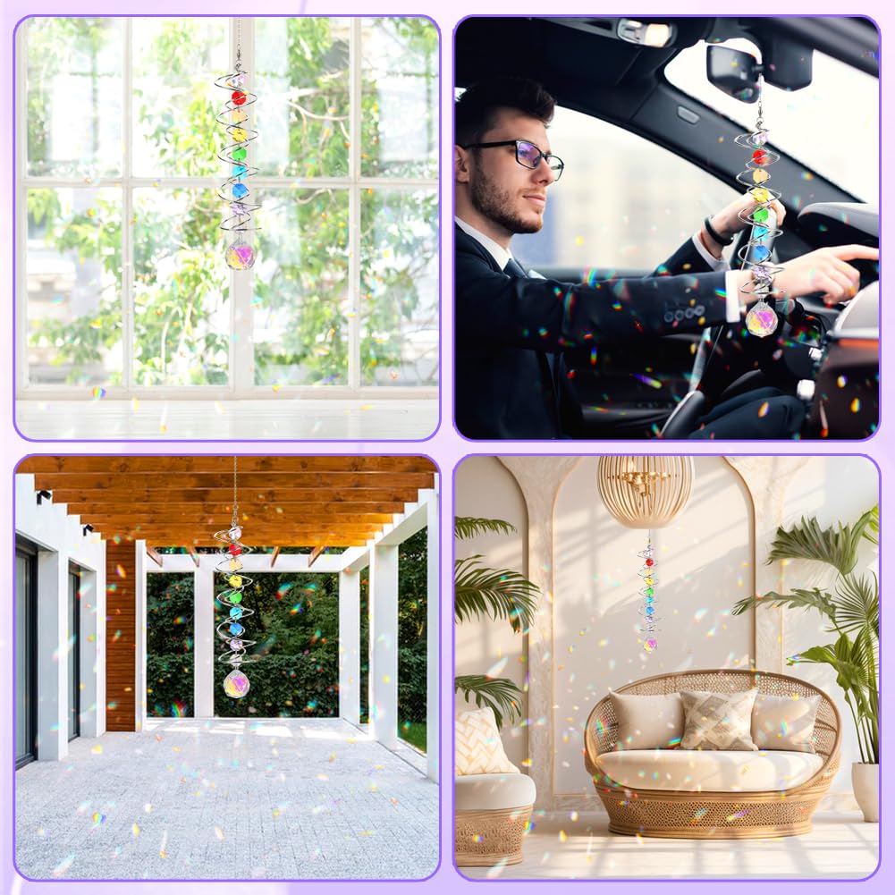• Sun Catchers: You will get a crystal suncatcher gazing ball, combination of seven chakra octagonal crystals and a AB colored crystal ball, when the special double structure spiral tail is rotated, the crystal ball seem to move up and down, make a magical optical illusion!