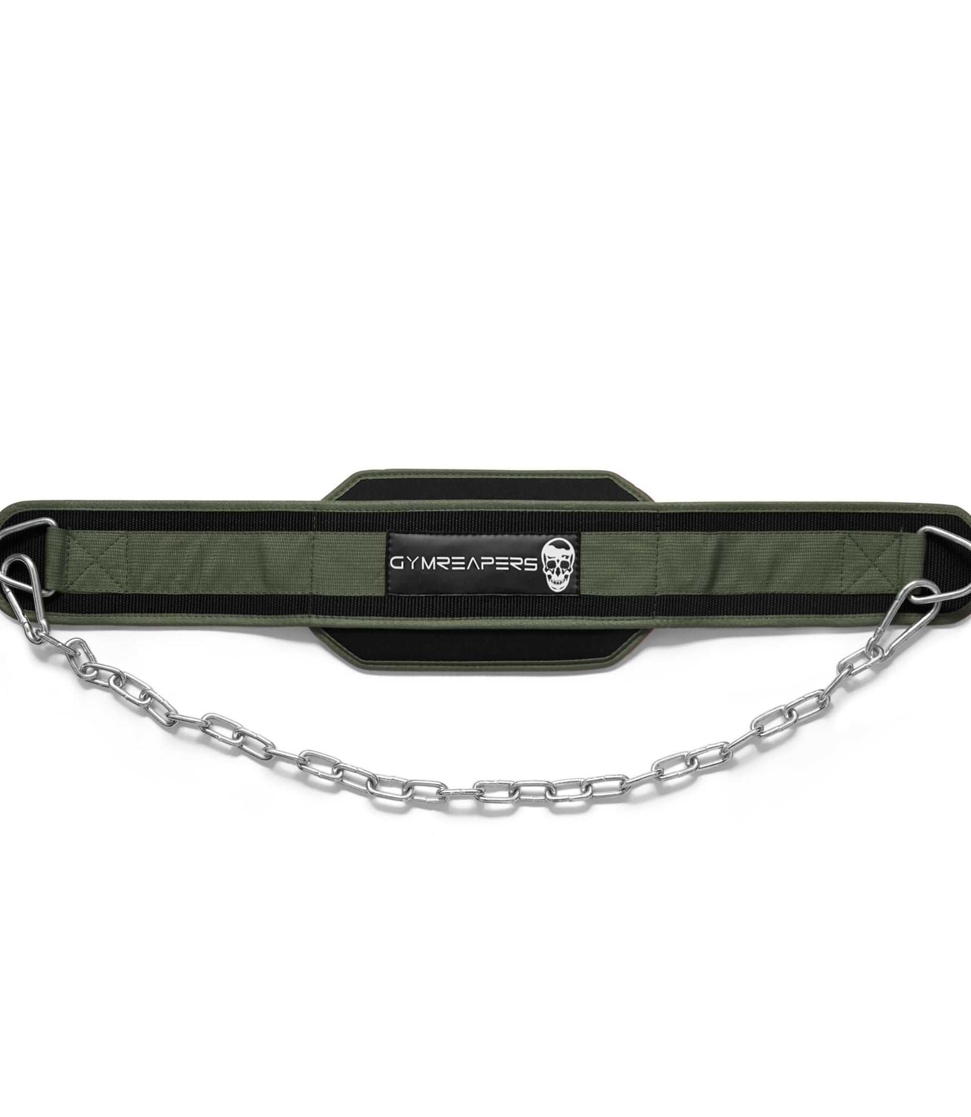 Gymreapers Dip Belt With Chain For Weightlifting, Pull Ups, Dips - Heavy Duty Steel Chain For Added Weight Training (Ranger Green)