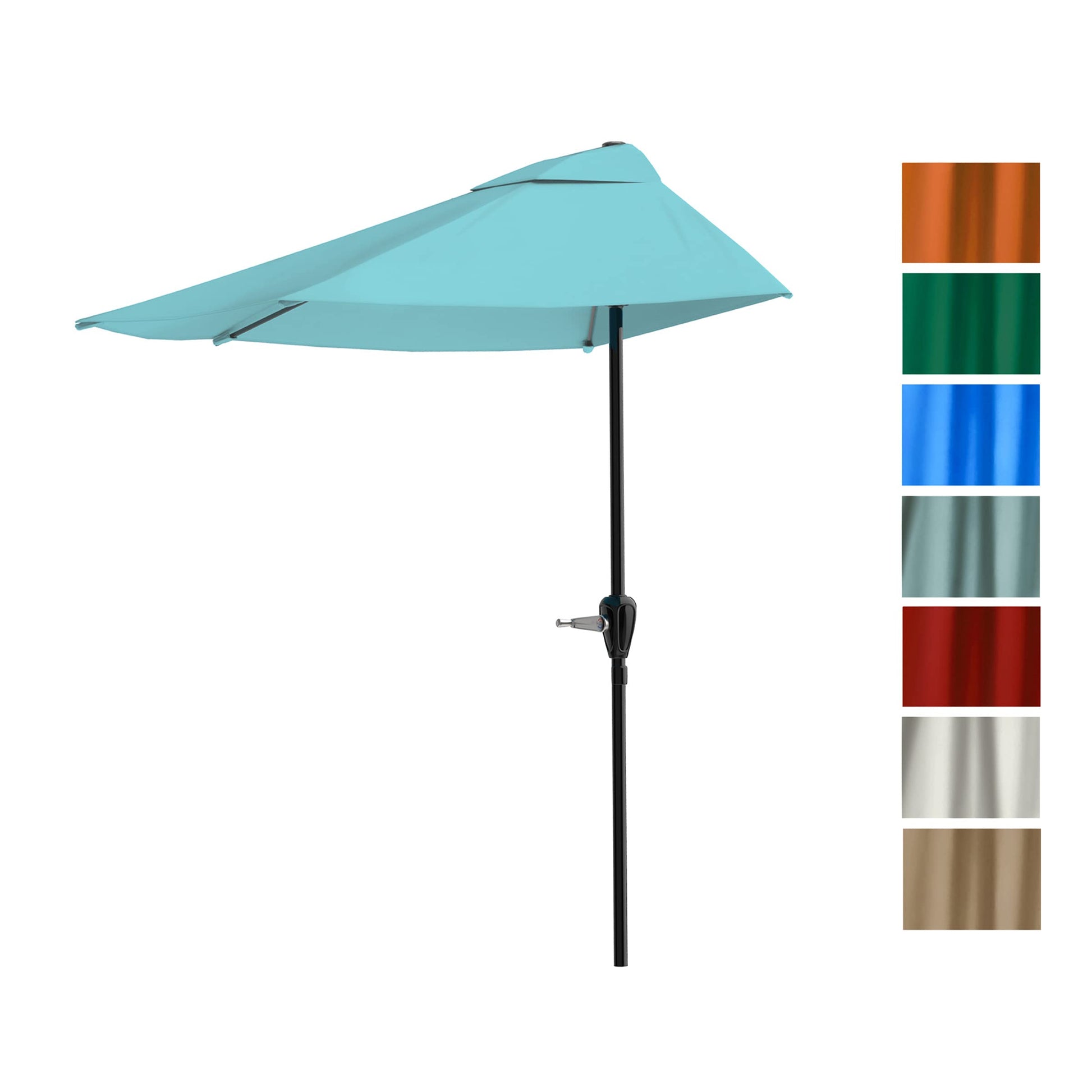 • HALF PATIO UMBRELLA - The easy-to-use crank handle opens and closes this outdoor umbrella in seconds, while the 9-foot half canopy provides ample shade. To create your outdoor oasis, simply place the steel pole in an umbrella base, stand, or table.