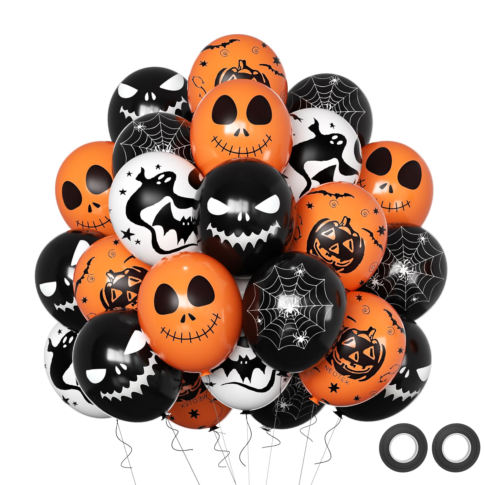 • Halloween Balloons Set: Contains 50 black, orange, and white 12 inch latex balloons with 3 different patterns for decorating