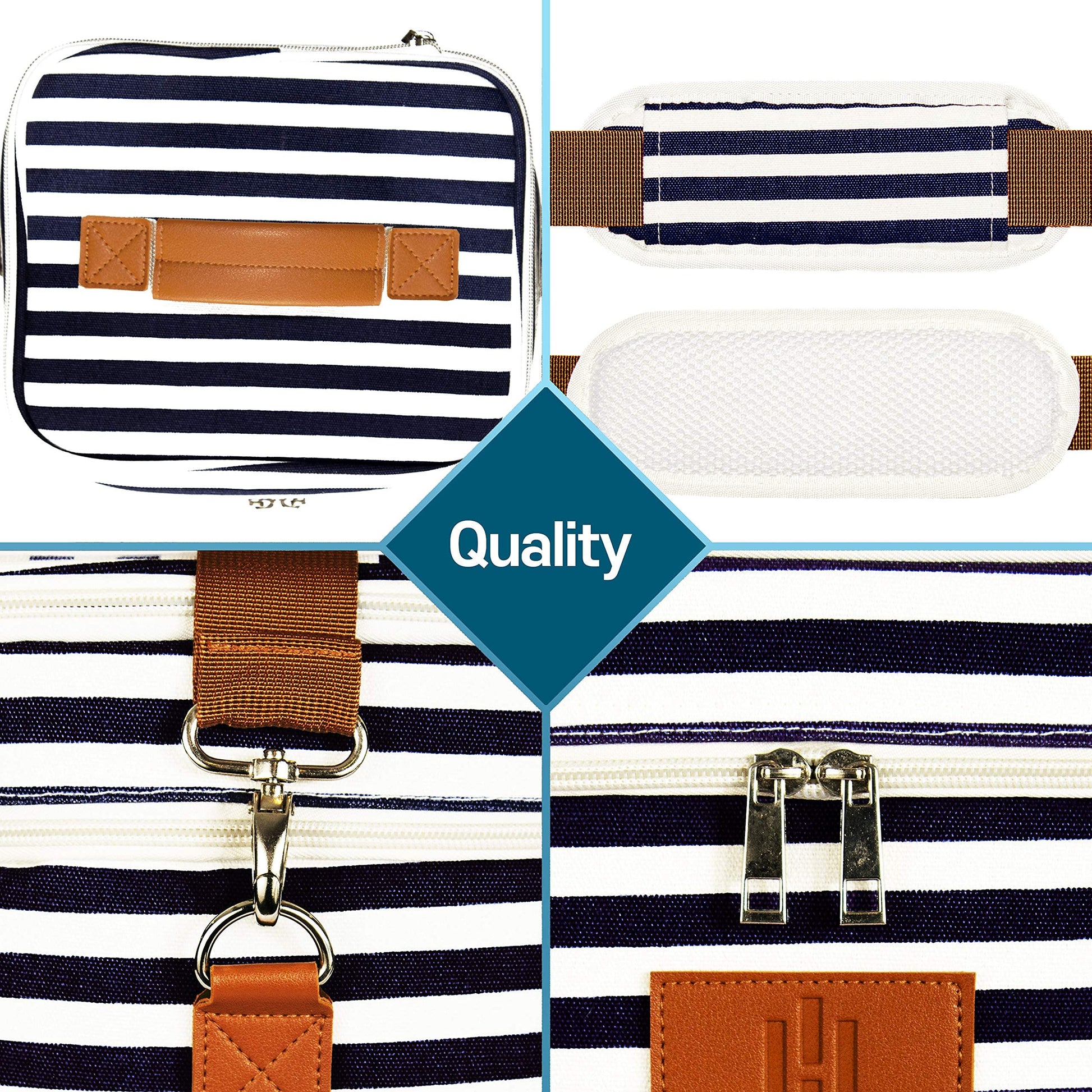 • Leakproof & Sturdy Build: The insulated wine tote bag is made using lightweight yet sturdy striped waterproof 12oz canvas fabric with PVC back coating that’s both waterproof and leakproof to make sure it’s sturdy enough to accompany you on all your trips and while eliminating the risk of any leaks
