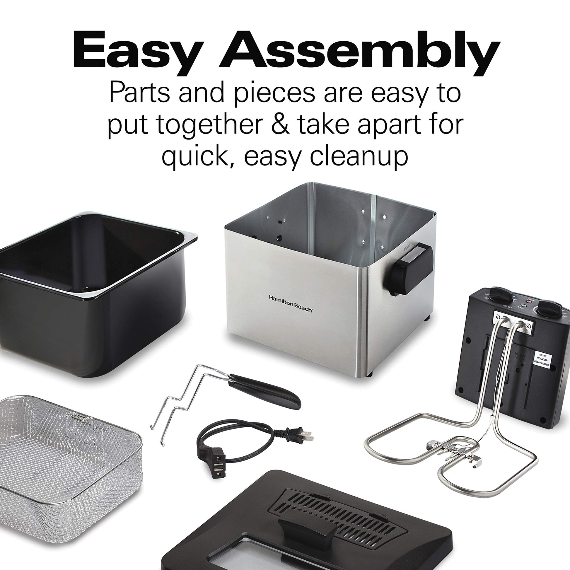 • Easy Cleaning: Heating Element Removes for Easy Cleaning. Enamel Coated Oil Tank, Lid and Basket Are Dishwasher Safe.