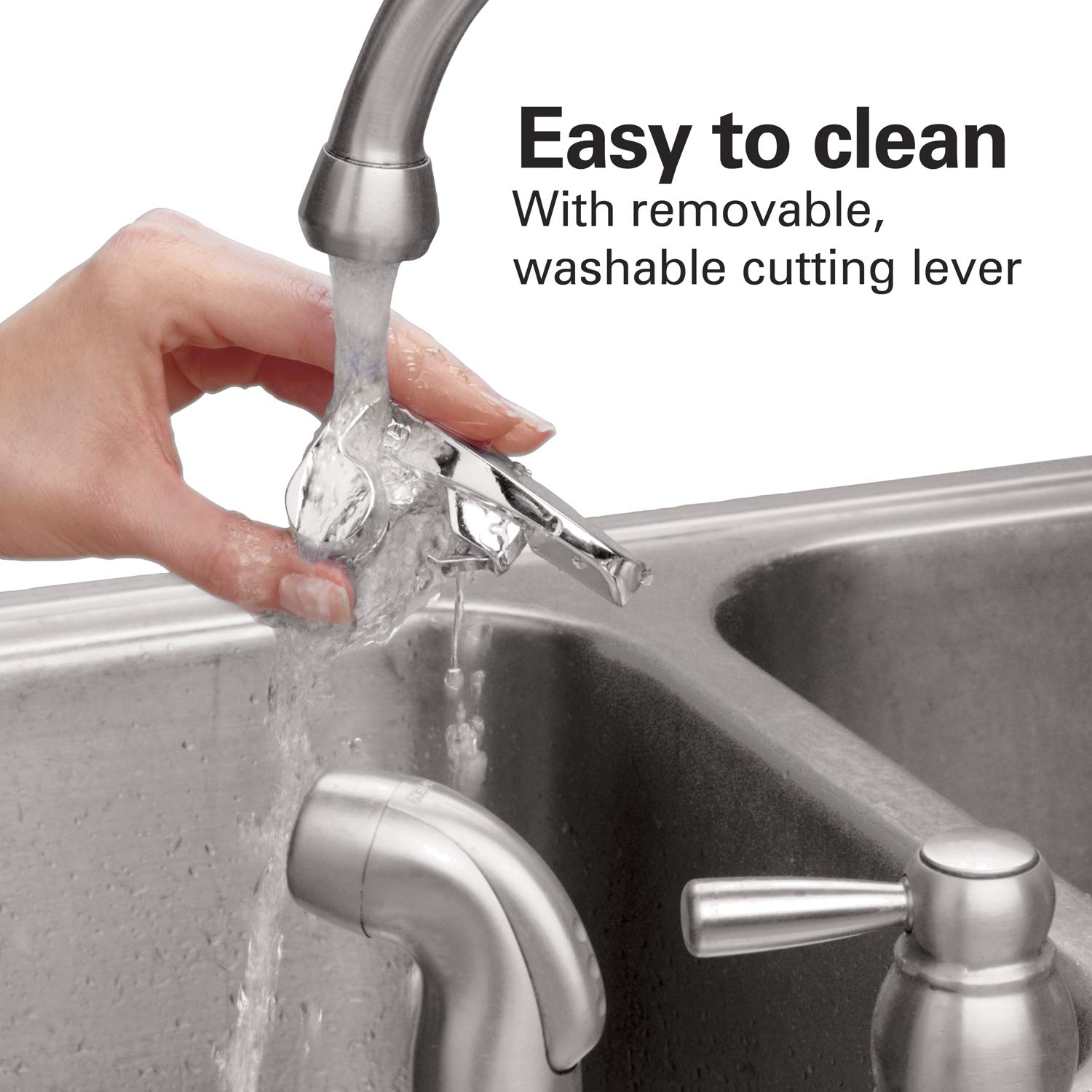 • EASY TO CLEAN: The washable cutting lever on the electric can opener easily removes to rinse clean under the faucet.