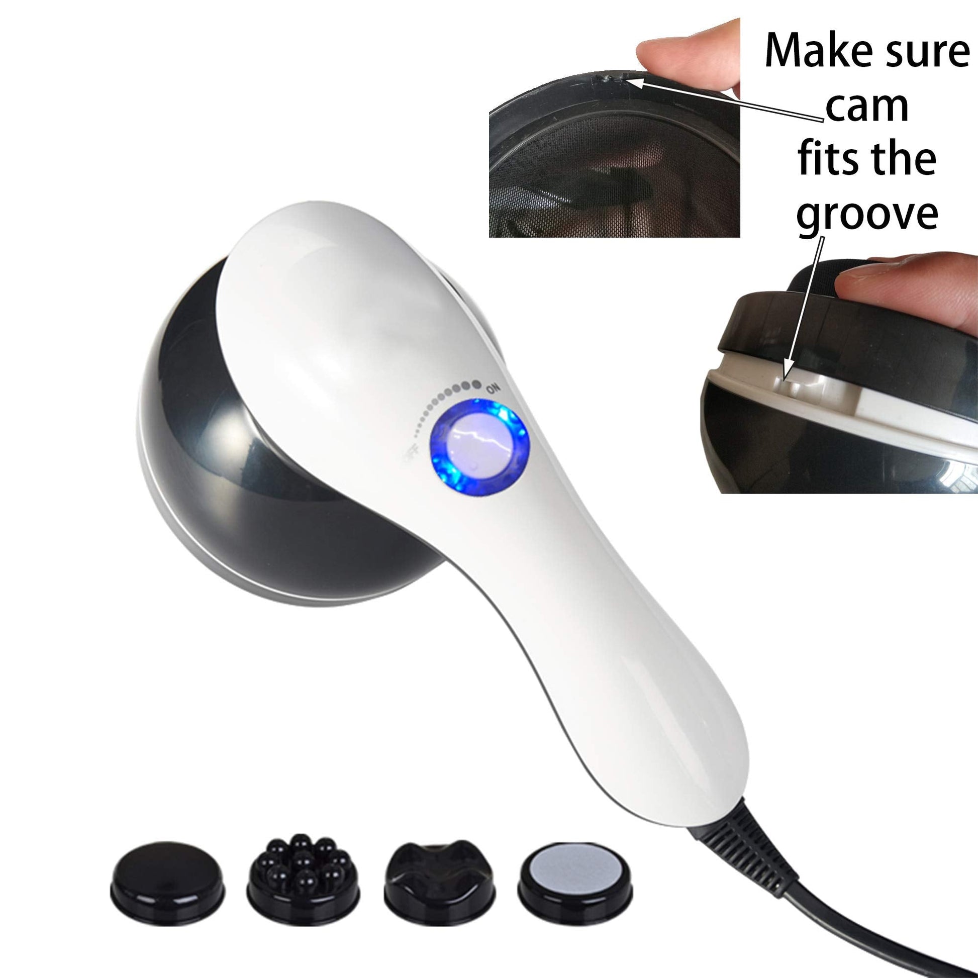 • Multiple Function: 4 different massage heads(1 included in massager base, 3 beside), button easy to control the vibration speed, smooth surface for arms and face, beaded surface for waistline relief, wavy surface for neck, shoulder, thigh and calf areas, pumice surface for feet buffing...
