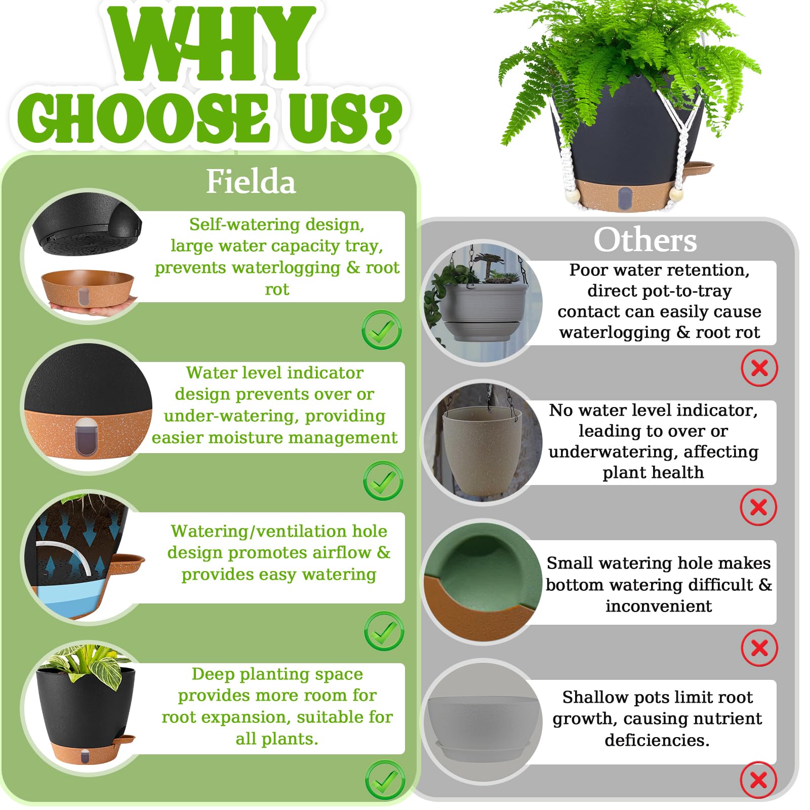• 【Never Over/Underwater Again!】Fielda's indoor hanging planters feature an EXCLUSIVE WATER WINDOW in the base tray - instantly check moisture levels without guesswork! Protect your plants from dehydration and promote healthy root systems with this visual watering guide. Perfect for hanging pots for indoor plants enthusiasts who value scientific plant care.