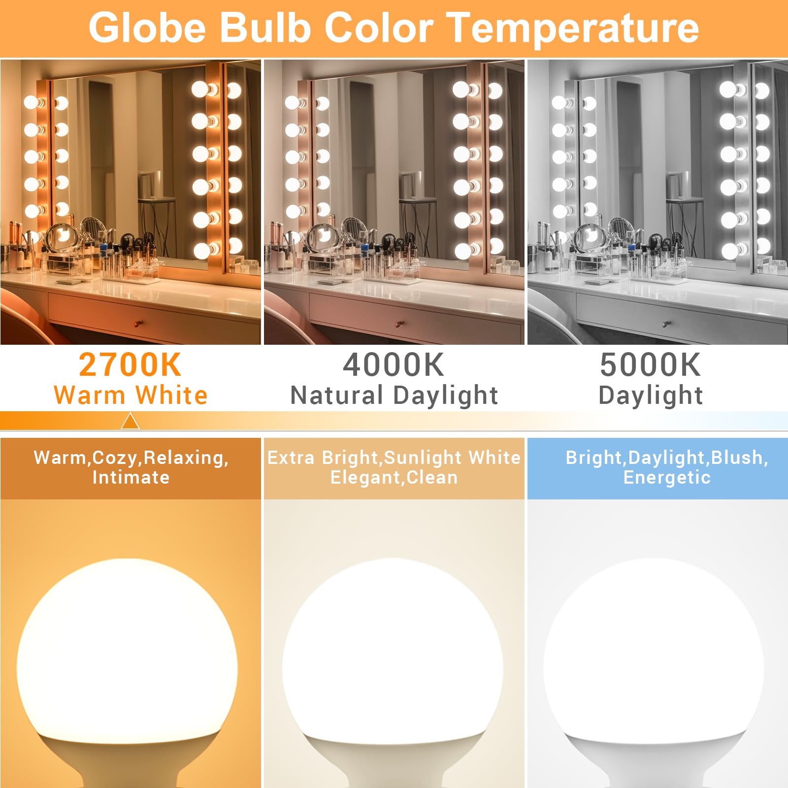 • Warm G25 LED Vanity Light Bulbs:This 2700K light bulb can emit warm and comfortable light. It is recommended to use it in any place where you need to relax in your home, such as bathroom, bedroom, dining room and other places that need a warm atmosphere.