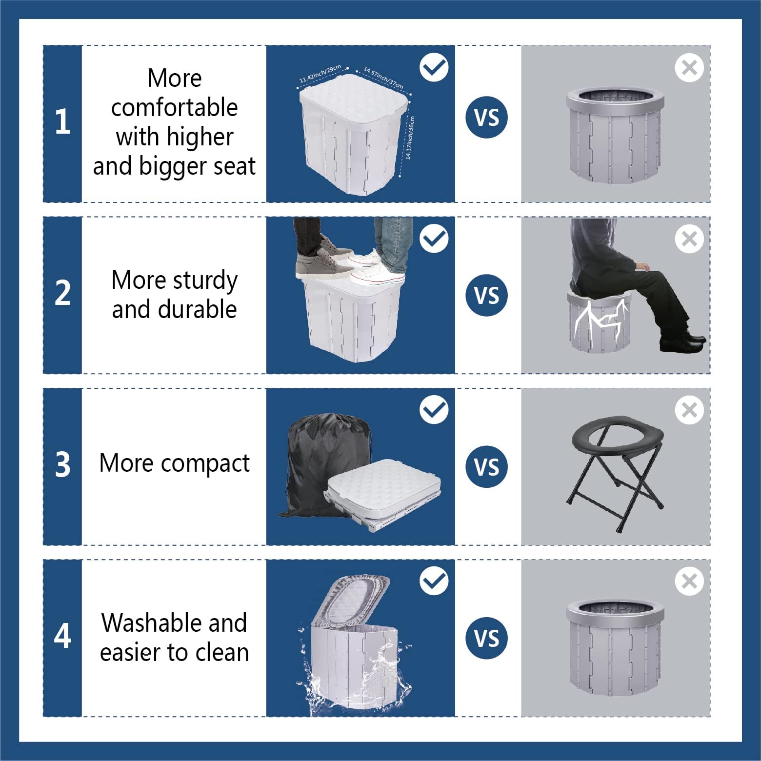• 【Extra Large and More Comfortable】The size of Hapoon portable toilet is 14.57"L*11.32"W*14.17"H, It is more comfortable with a higher and wider seat compared with most of other portable toilets in the market.