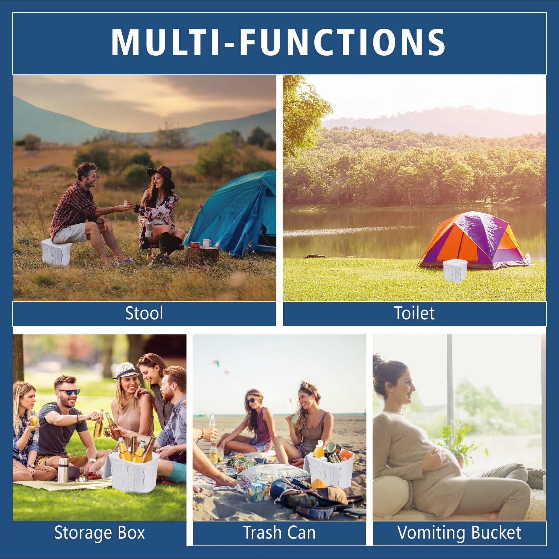 • 【Multifunctional and Widely Applicable】With lid, it can not only be used as an outdoor toilet, but also as indoor toilet for the elderly,a trash can, a storage box, a stool, a vomiting bucket, etc. to satisfy your different needs when taking outdoor activities. Perfect for backpacking, traveling, camping, boating, fishing, hiking, long road trip, and more.