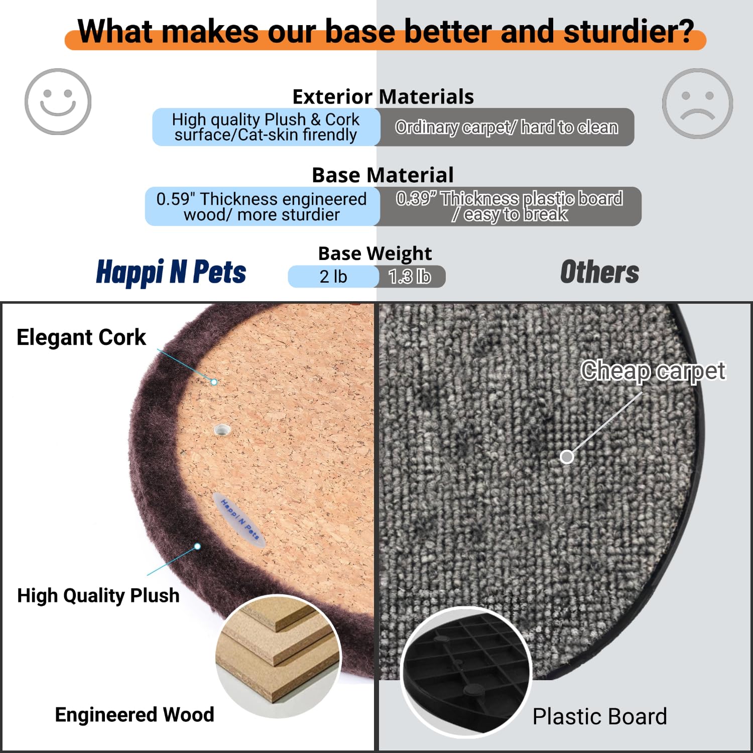 • 【Heavy Duty Base】The base is up to 0.59 inches thick, and it is sturdy and heavy (2 lbs), which prevents the cat rubbing post from toppling over when it is seated on the ground