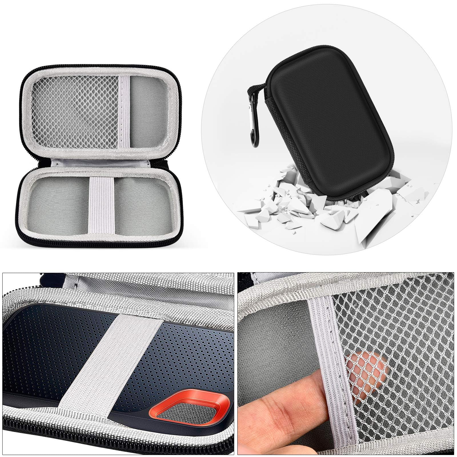 • Portable SSD Hard Case with 100% Protection: External solid state drives case made of hard EVA material, with good shockproof, external ssd case protect your external hard drive ssd from scratches, dents, bumps and drops. Solid state external hard drive case extend the service life of the extreme portable ssd