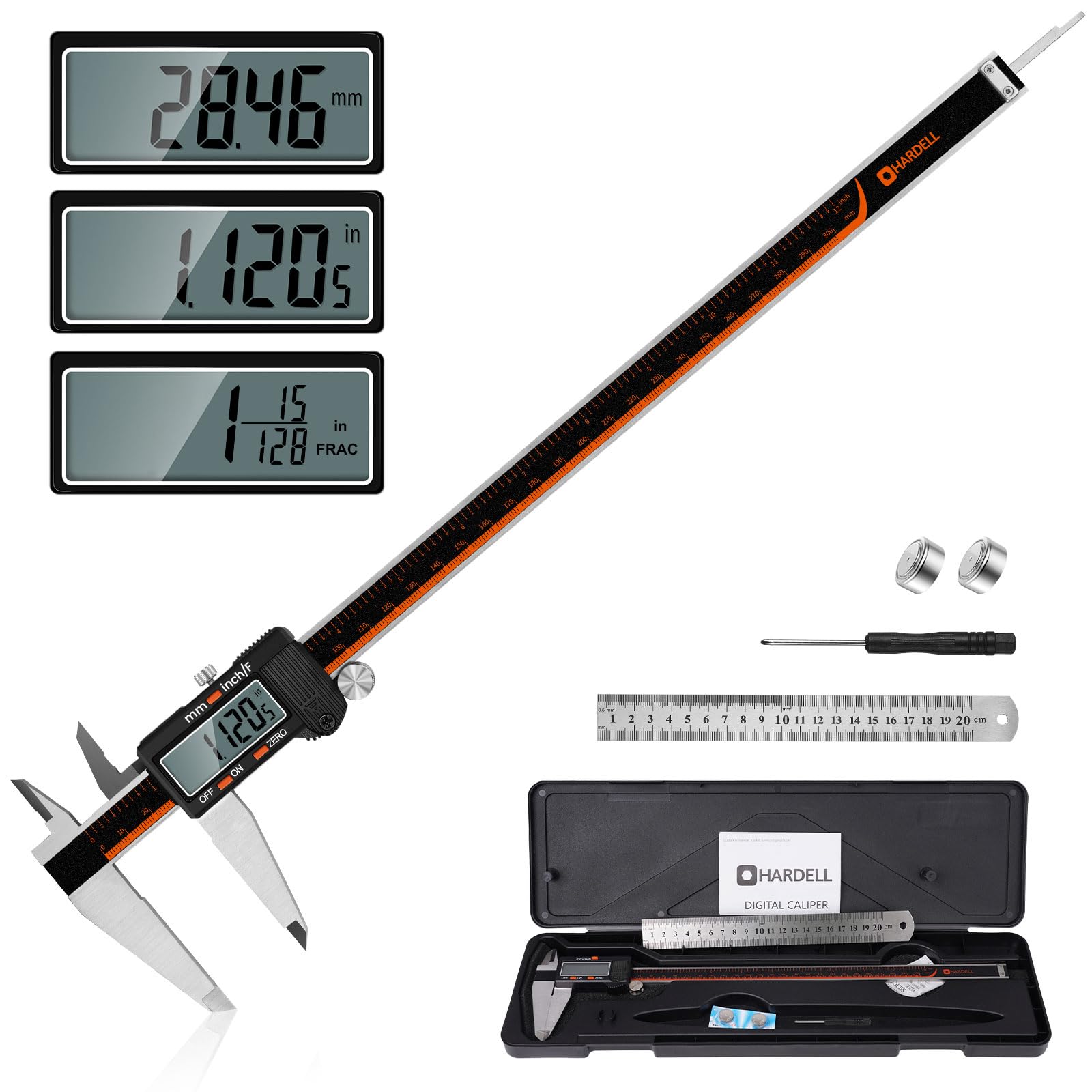 • 【Wide application】HARDELL digital caliper comes with 1*ruler, 1*screwdriver, 2*batteries. The case is resistant to pressure, shock and drop for easy storage and carrying. 12 inch caliper micrometer has been used by professionals and amateurs, it is the best choice for mechanics, woodworkers, jewelers, craftsmen, DIY enthusiasts, auto mechanics, etc